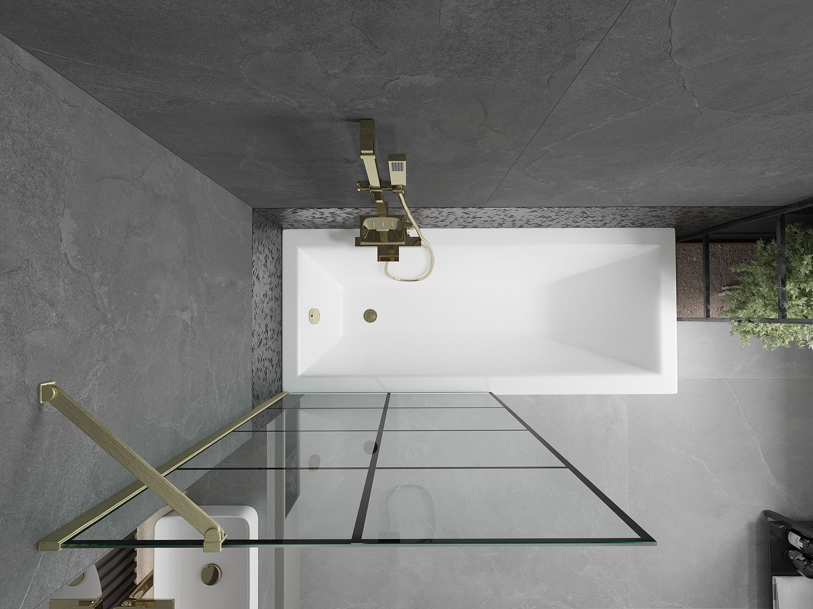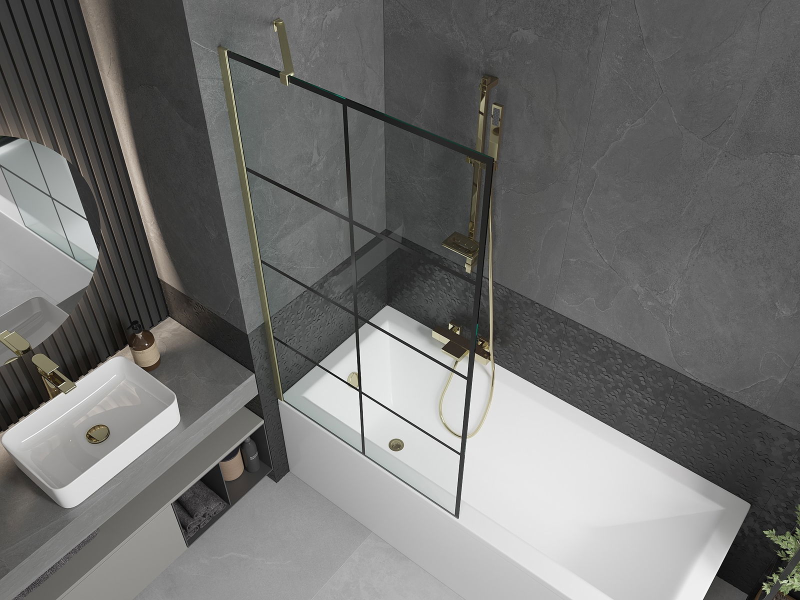 Mexen Next sprchová zástěna 1-dílná 90 x 150 cm, černá mřížka, zlatý kartáčovaný - 895-090-000-00-77-55