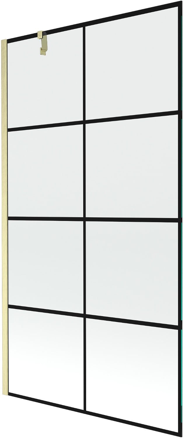 Mexen Next vanová zástěna 1křídlová 100 x 150 cm, černá mřížka, zlatý kartáčovaný - 895-100-000-00-77-55