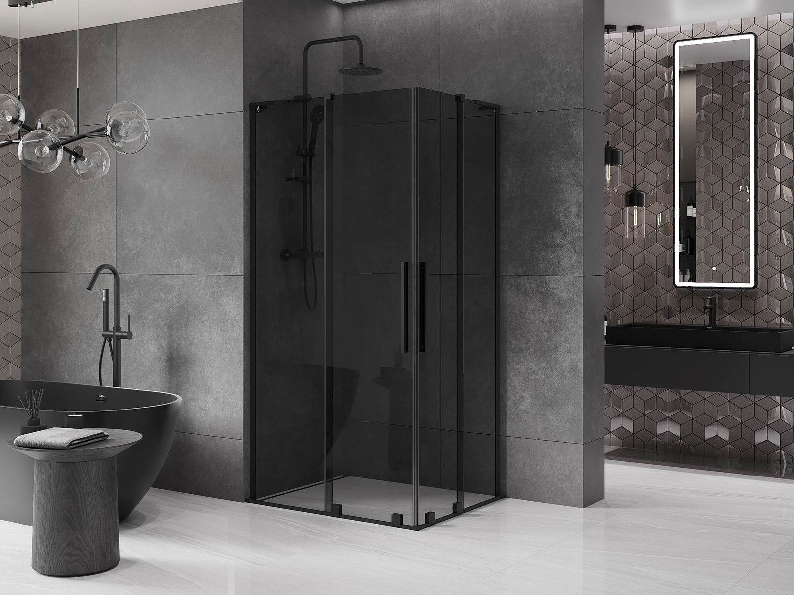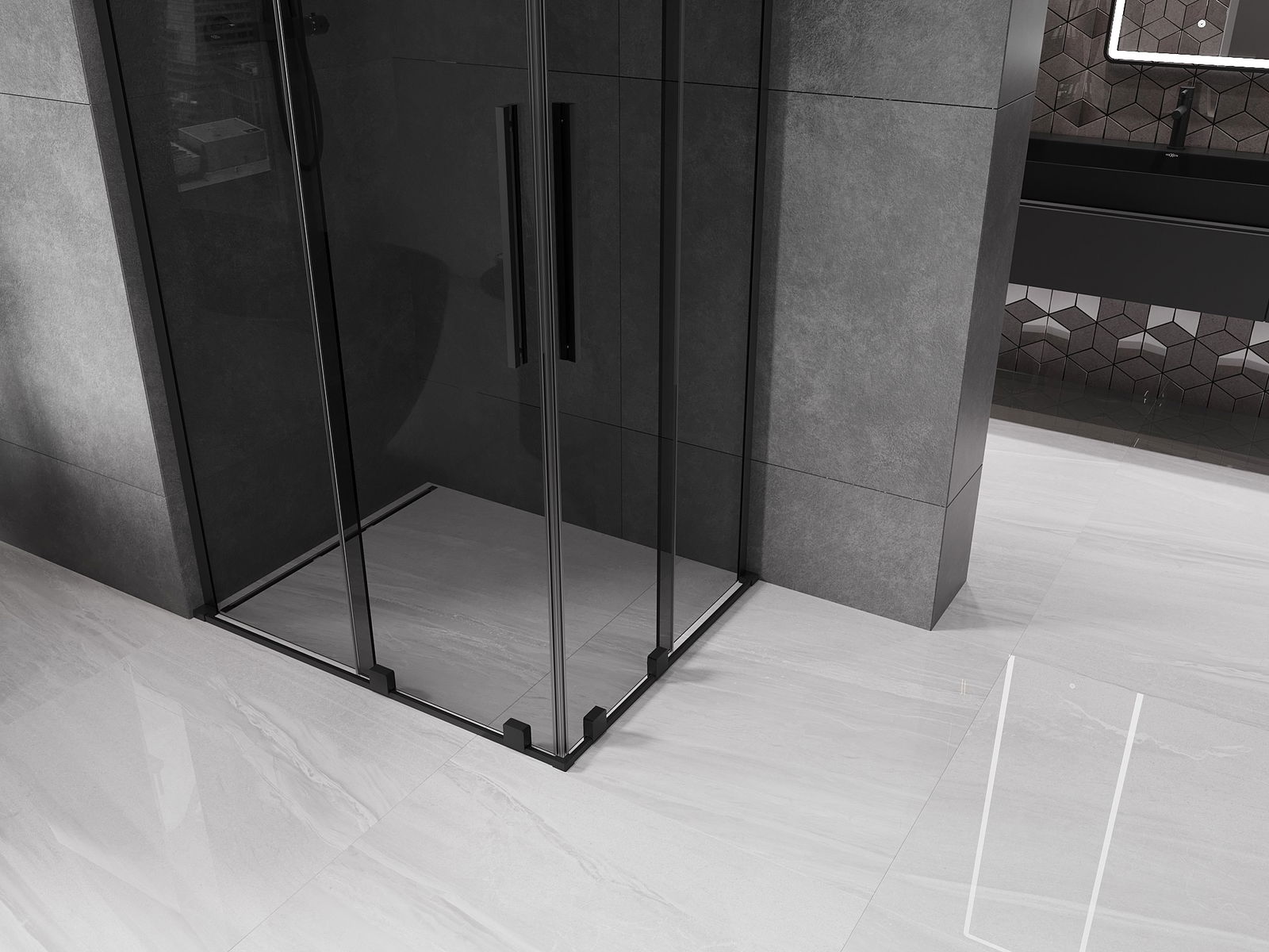 Mexen Velar L Duo sprchový kout posuvný 90 x 80 cm, grafit, černý - 871-090-080-02-43-70