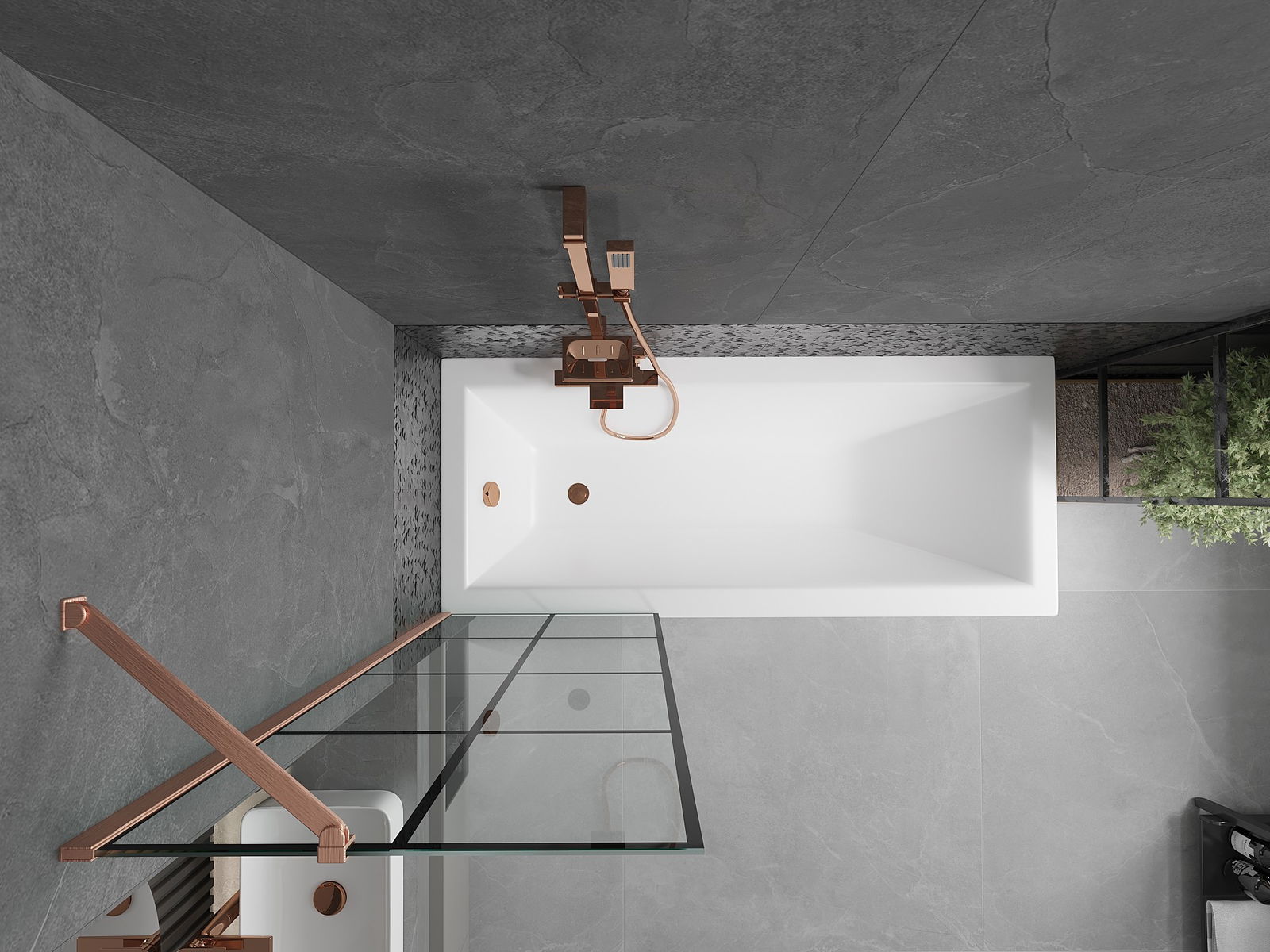 Mexen Next jednokřídlé vanové zástěny 60 x 150 cm, černá mřížka, kartáčovaná měď - 895-060-000-00-77-65
