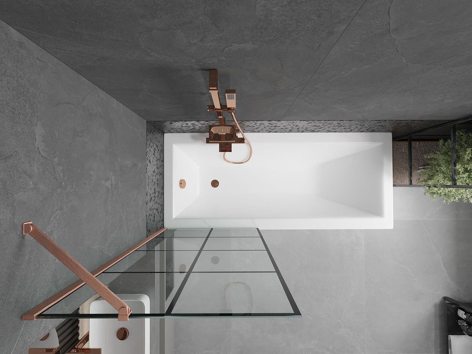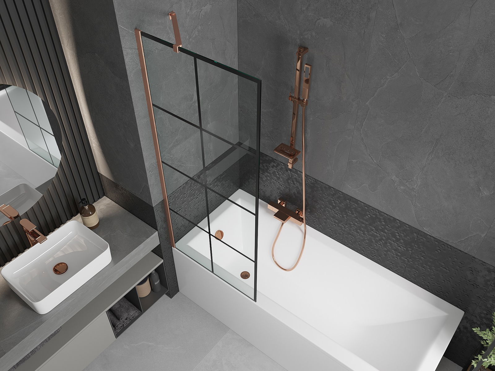 Mexen Next sprchová zástěna jednokřídlá 70 x 150 cm, černá mřížka, kartáčovaná měď - 895-070-000-00-77-65