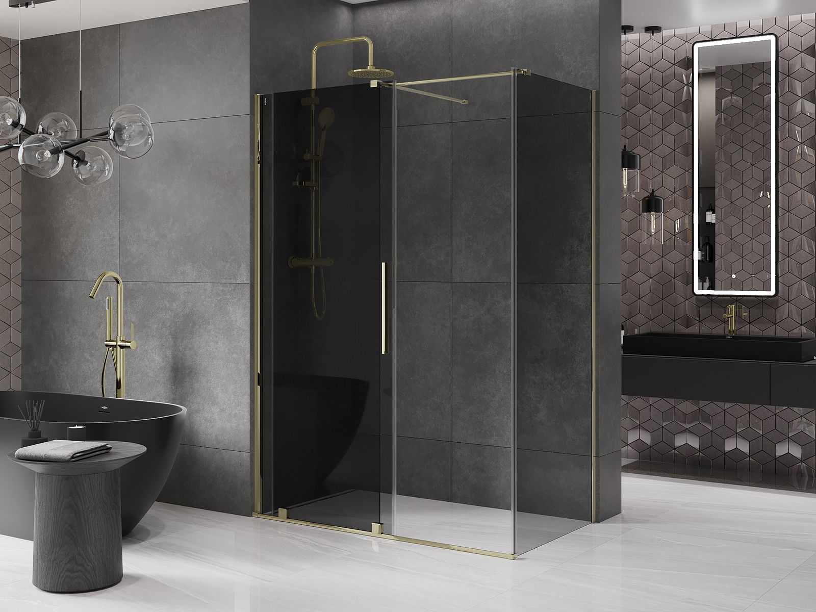 Mexen Velar posuvná sprchová kabina 150 x 80 cm, grafit, zlato - 871-150-080-41-50