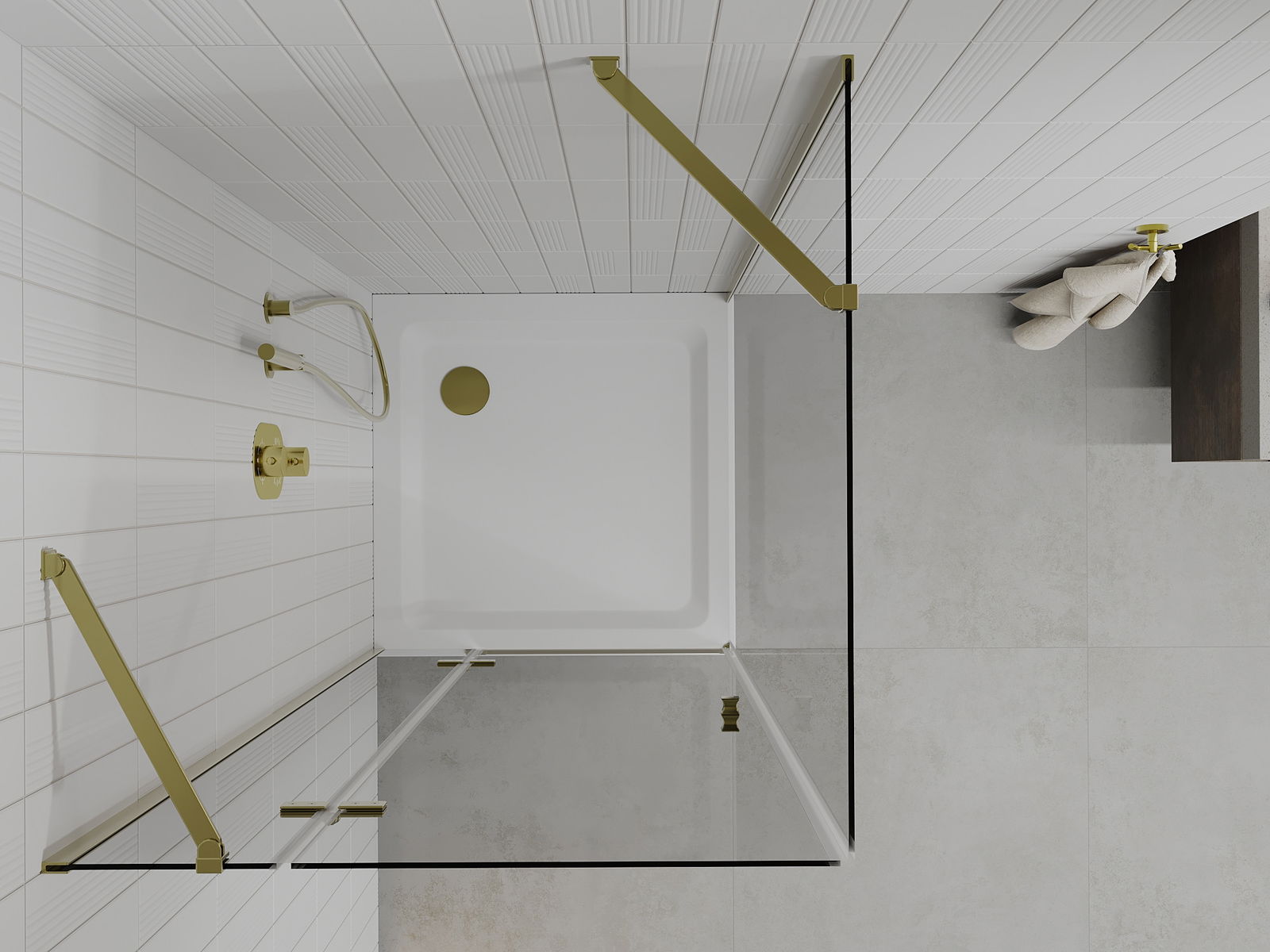 Mexen Roma sprchový kout s otevíracími dveřmi 80 x 80 cm, transparentní, zlatý + vanička Flat - 854-080-080-50-00-4010