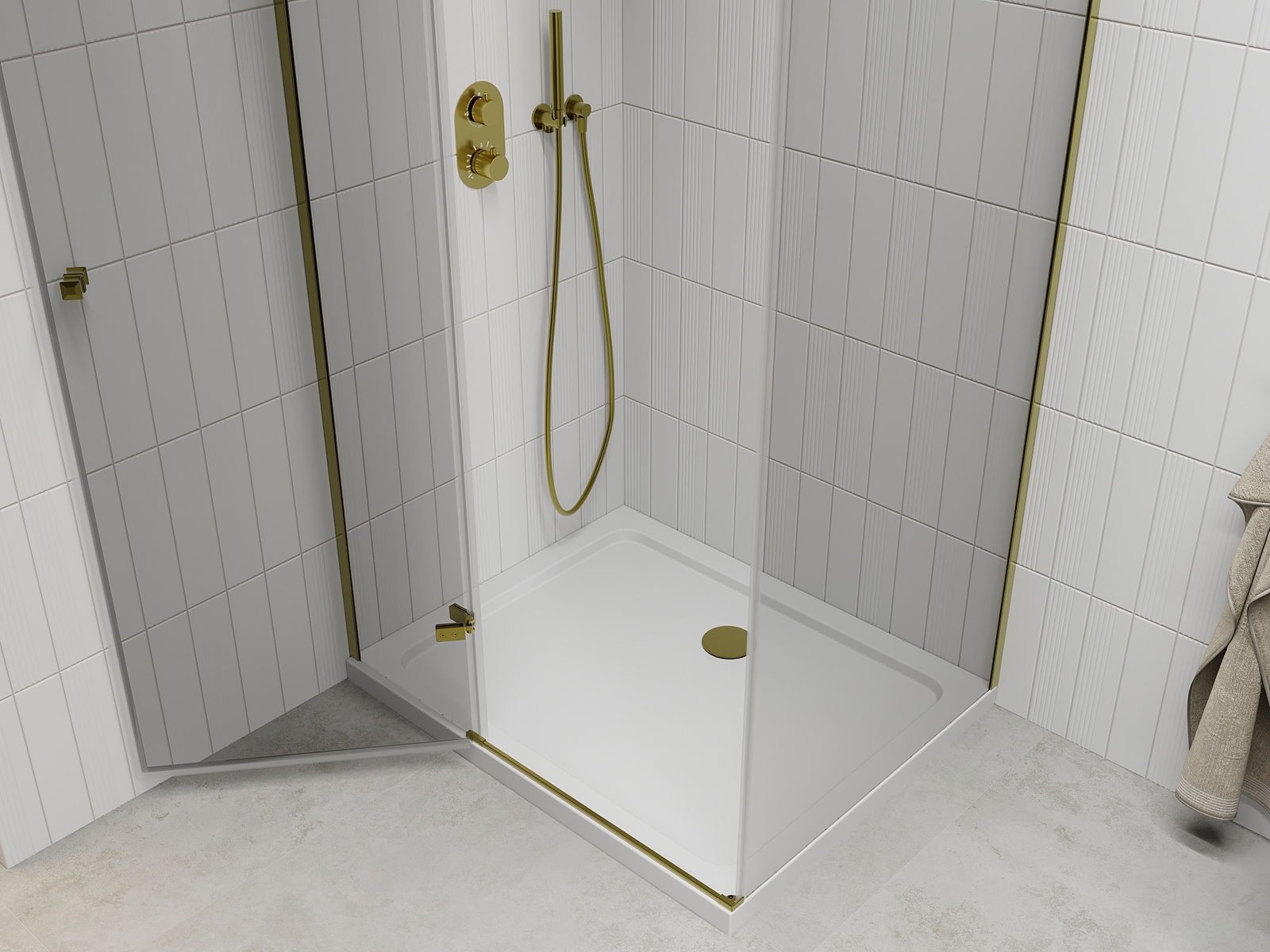 Mexen Roma sprchová kabina otočná 80 x 90 cm, transparentní, zlatá + sprchová vanička Flat - 854-080-090-50-00-4010