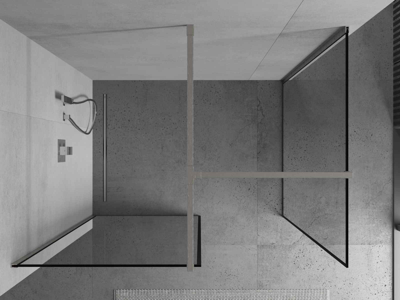 Mexen Kioto sprchová stěna Walk-in 150 x 100 cm, černý rám, kartáčovaný nikl - 800-150-202-97-70-100