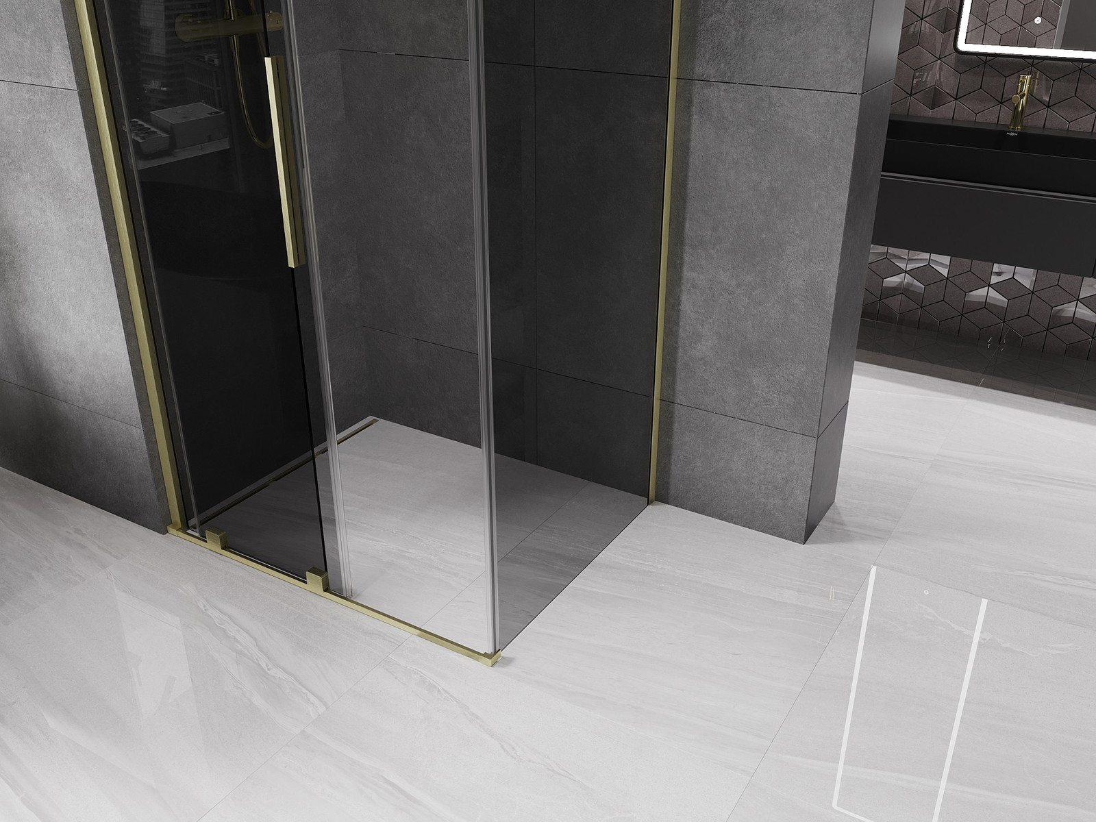Mexen Velar posuvná sprchová kabina 130 x 80 cm, grafit, zlatá kartáčovaná - 871-130-080-41-55