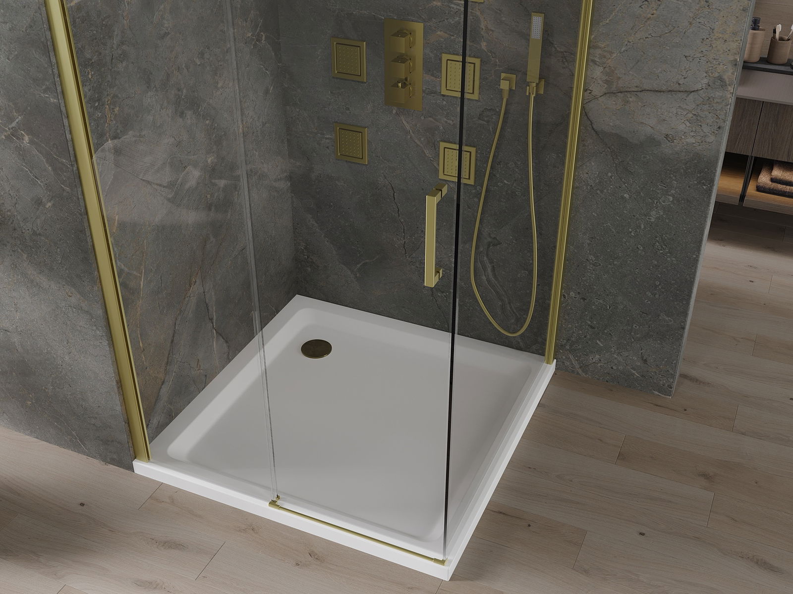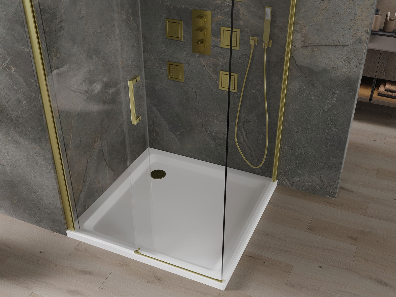 Mexen Omega posuvná sprchová kabina 100 x 100 cm, transparentní, zlatá + vanička Flat - 825-100-100-50-00-4010