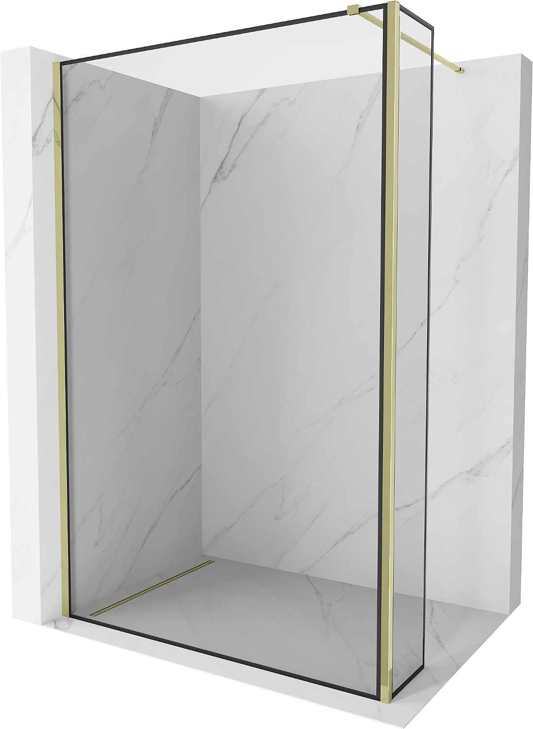 Mexen Kioto sprchová stěna Walk-in 130 x 40 cm, černý rámeček, zlatá - 800-130-212-50-70-040