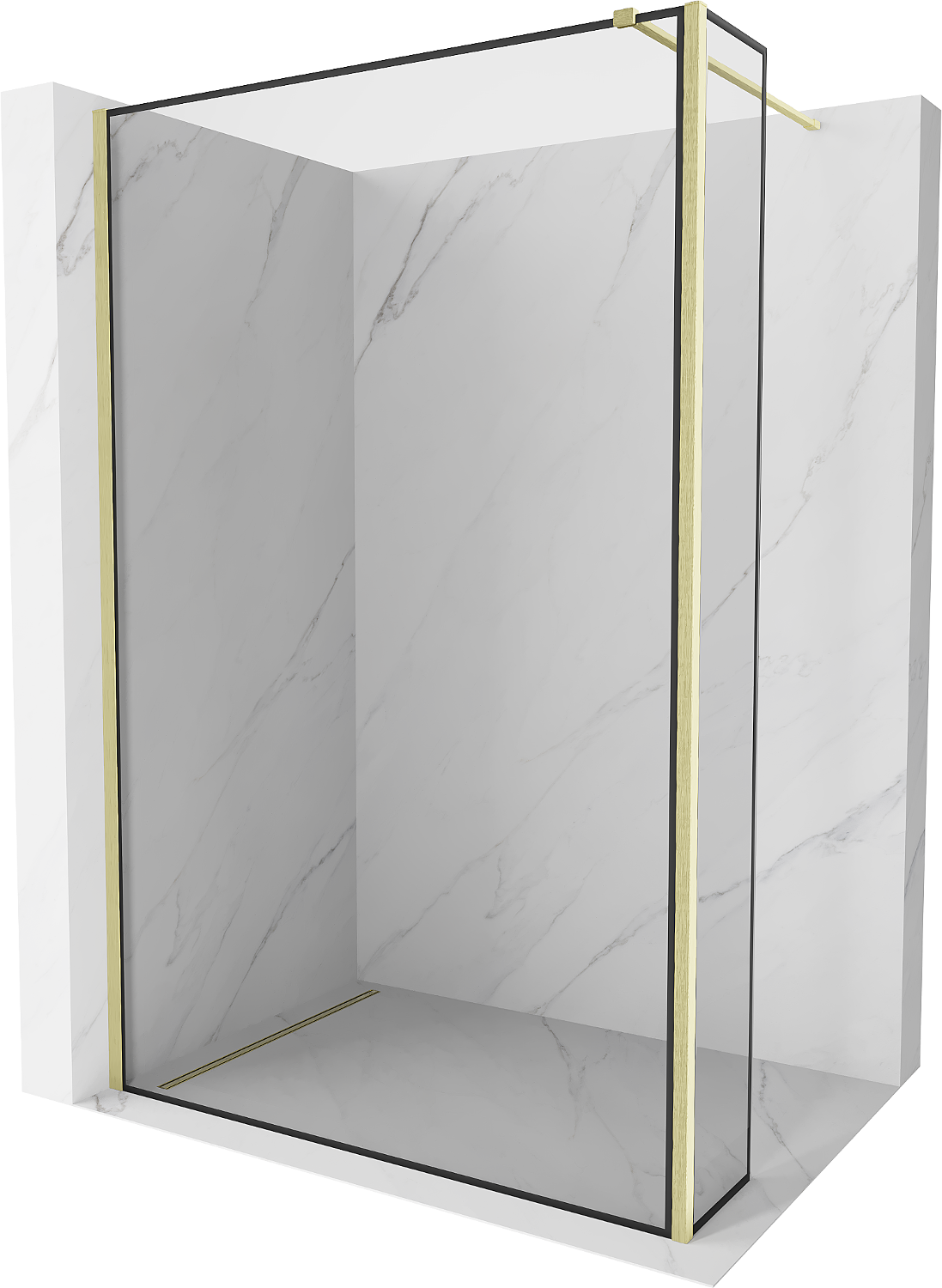Mexen Kioto sprchová stěna Walk-in 90 x 30 cm, černý rám, zlatý kartáčovaný - 800-090-212-55-70-030