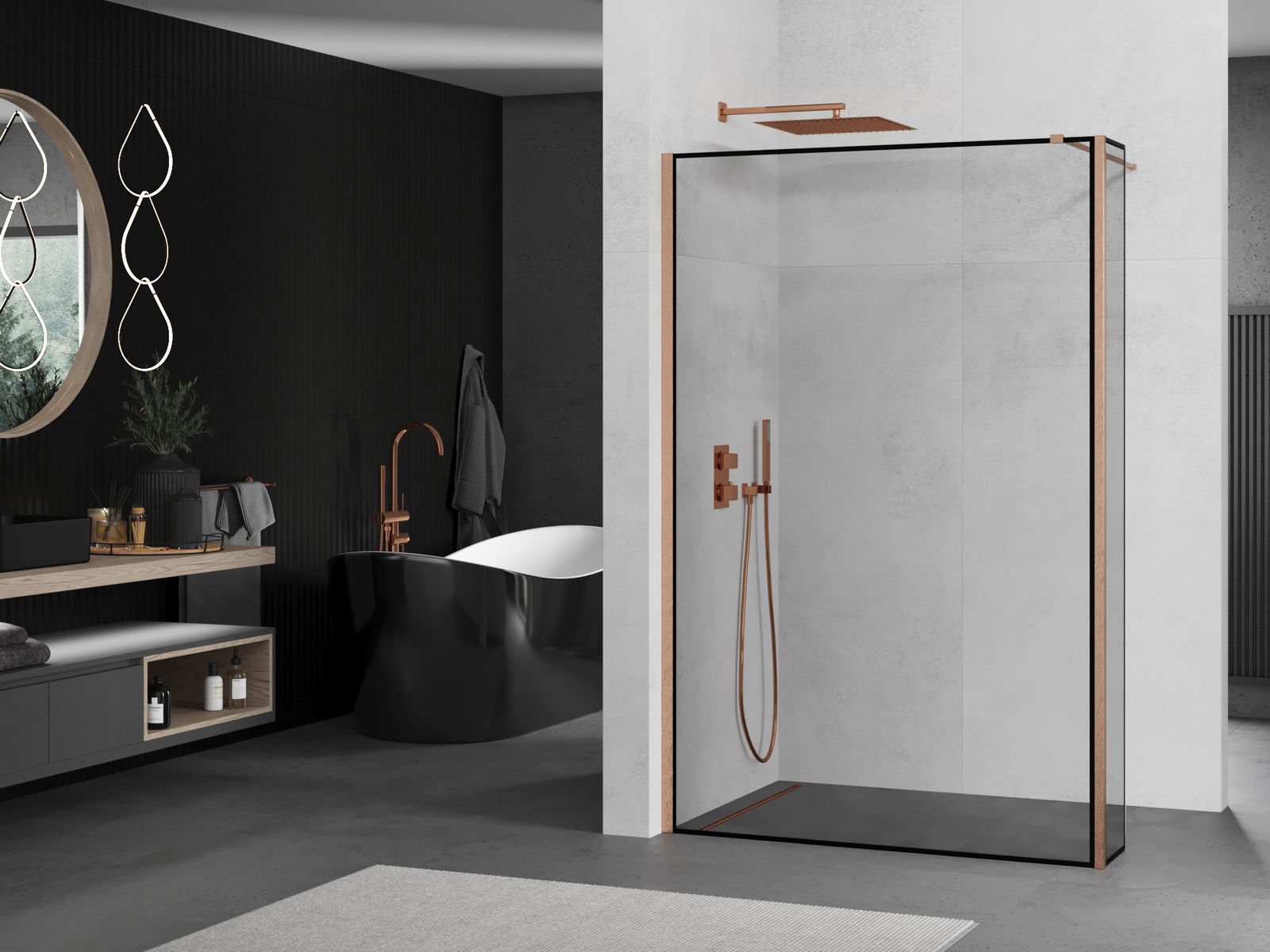 Mexen Kioto sprchová stěna Walk-in 100 x 40 cm, černý rám, kartáčovaná měď - 800-100-212-65-70-040