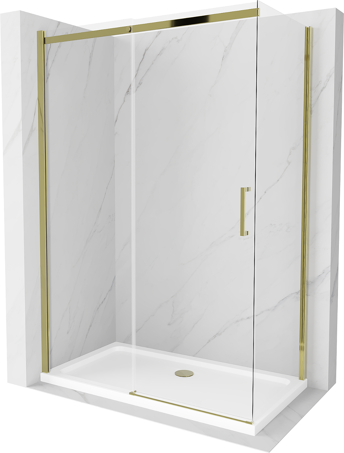 Mexen Omega sprchový kout posuvný 140 x 70 cm, transparentní, zlatý + vanička Flat - 825-140-070-50-00-4010