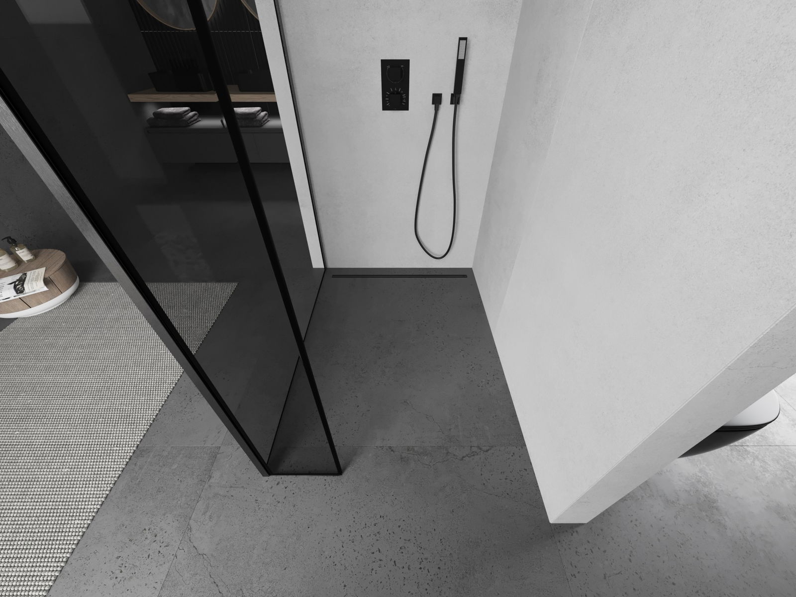 Mexen Kioto sprchová stěna Walk-in 130 x 30 cm, černý rám, gun gray kartáčovaný - 800-130-212-66-70-030
