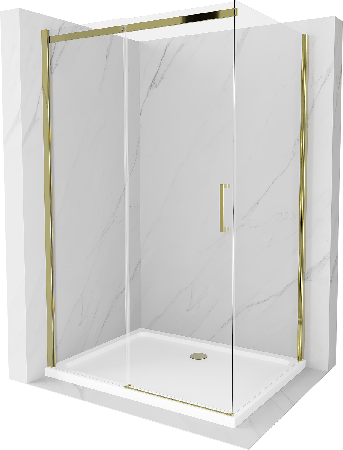 Mexen Omega posuvná sprchová kabina 140 x 100 cm, transparentní, zlatá + sprchová vanička Flat - 825-140-100-50-00-4010