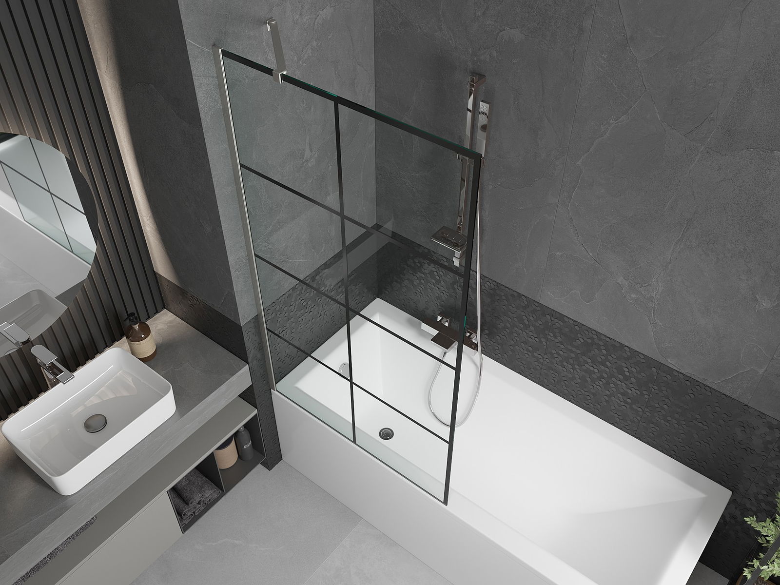 Účinná ochrana před rozléváním vody během koupání. Paraván má těsnění, která se ideálně přizpůsobují skleněné desce a okraji vany. Funkční řešení zajišťující bezpečnost a snadnou údržbu čistoty.