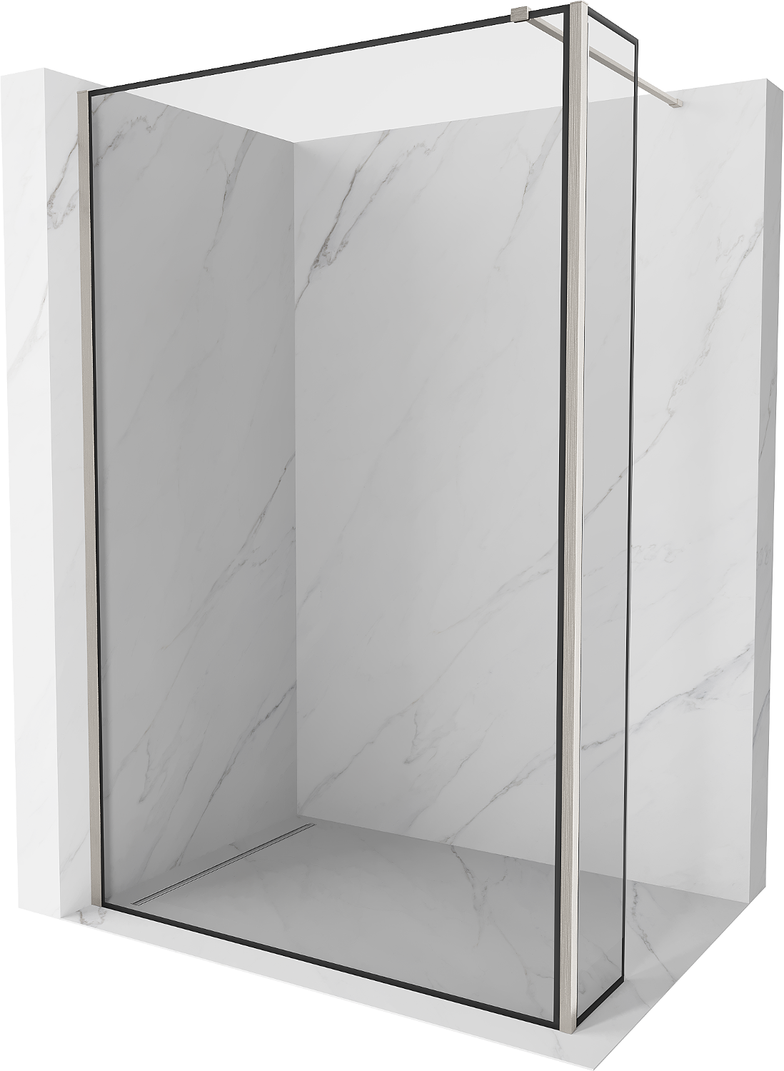 Mexen Kioto sprchová stěna Walk-in 130 x 40 cm, černý rámeček, kartáčovaný nikl - 800-130-212-97-70-040