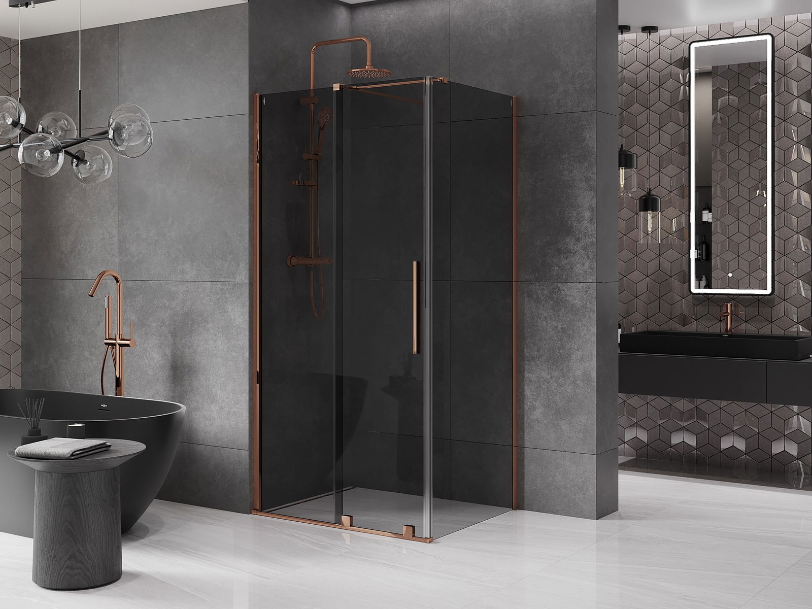 Mexen Velar posuvná sprchová kabina 90 x 80 cm, grafit, růžové zlato - 871-090-080-41-60