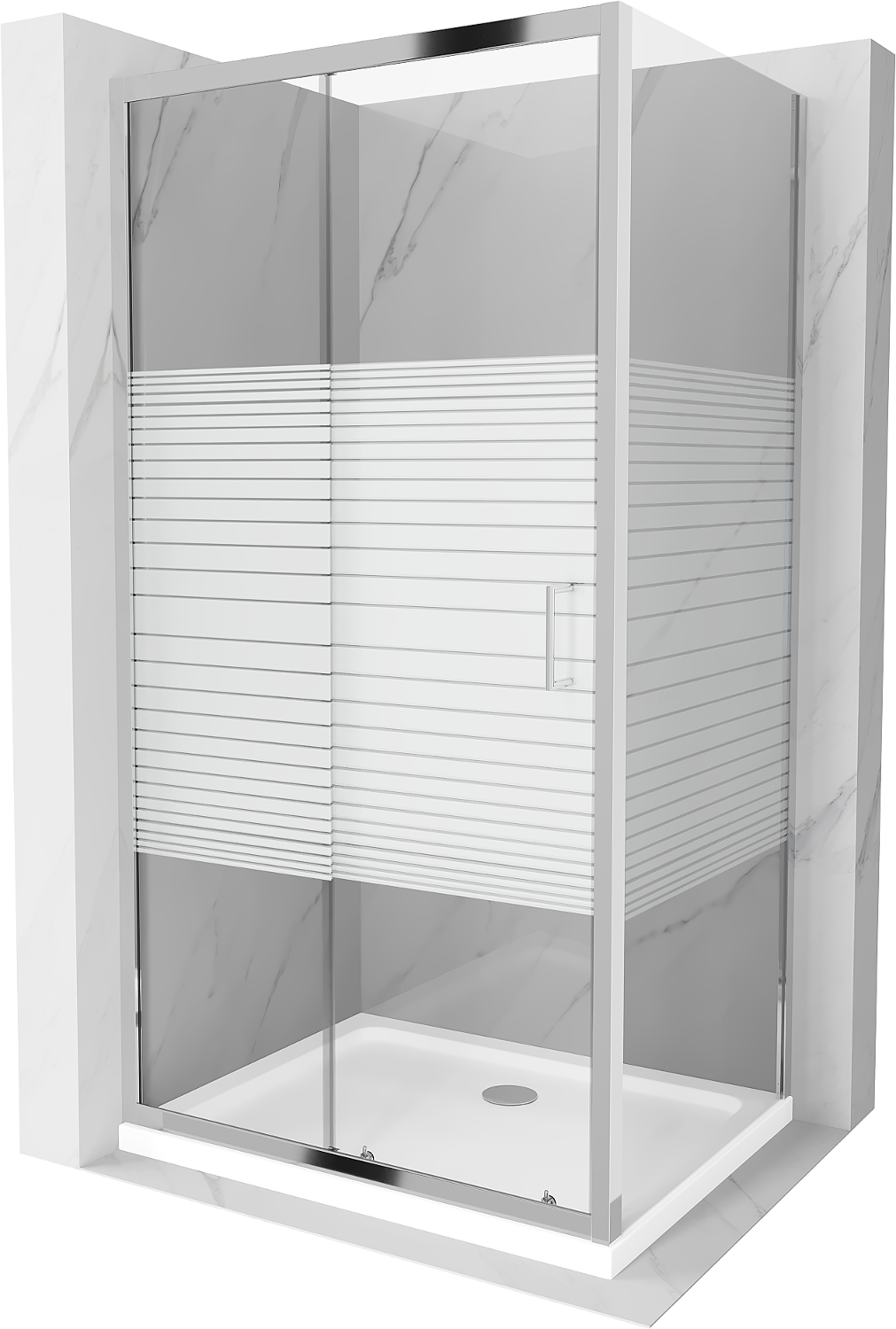 Mexen Apia posuvná sprchová kabina 90 x 70 cm, bílé pruhy, chrom + vanička Flat - 840-090-070-01-20-4010