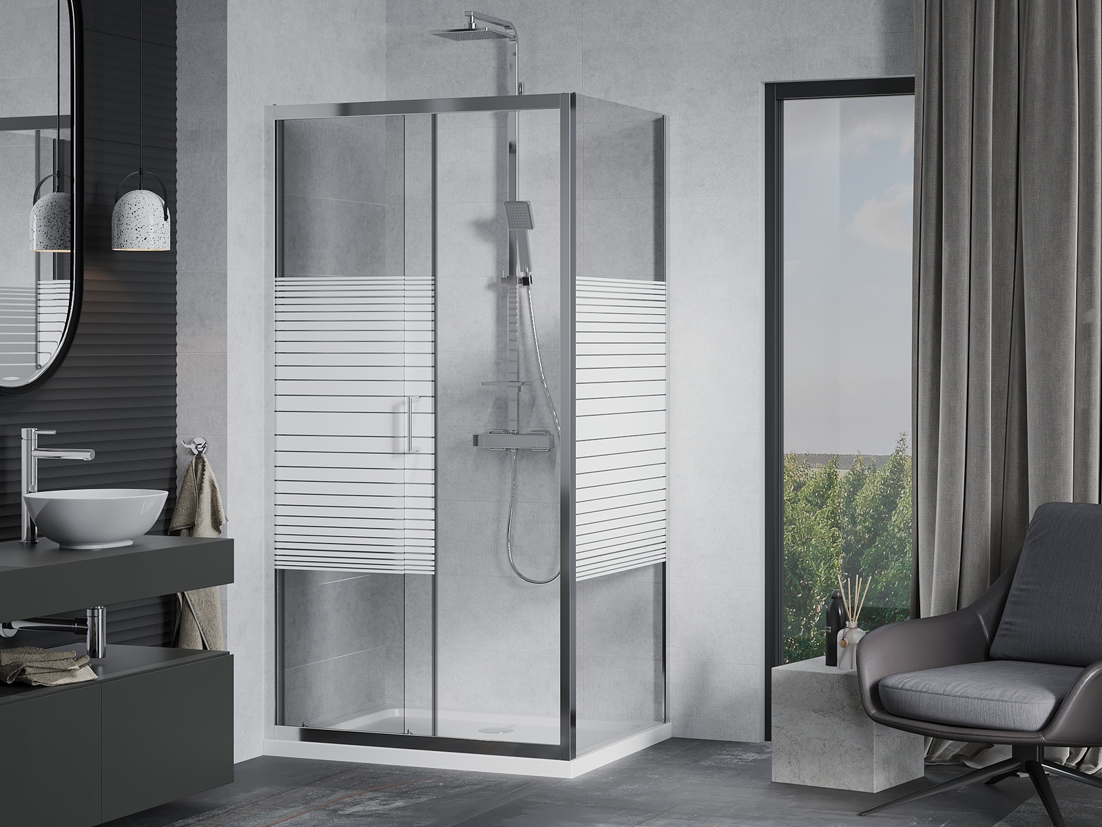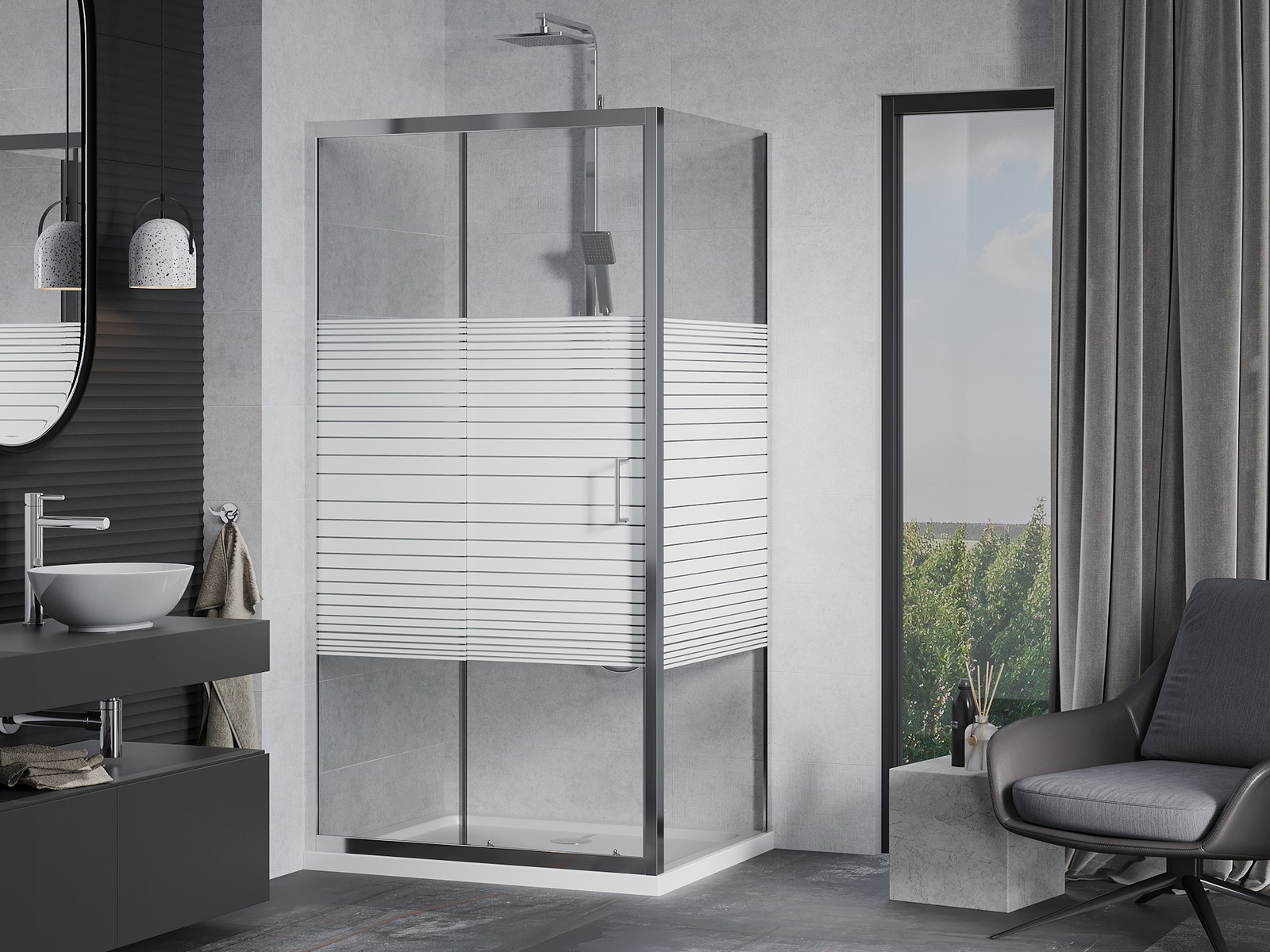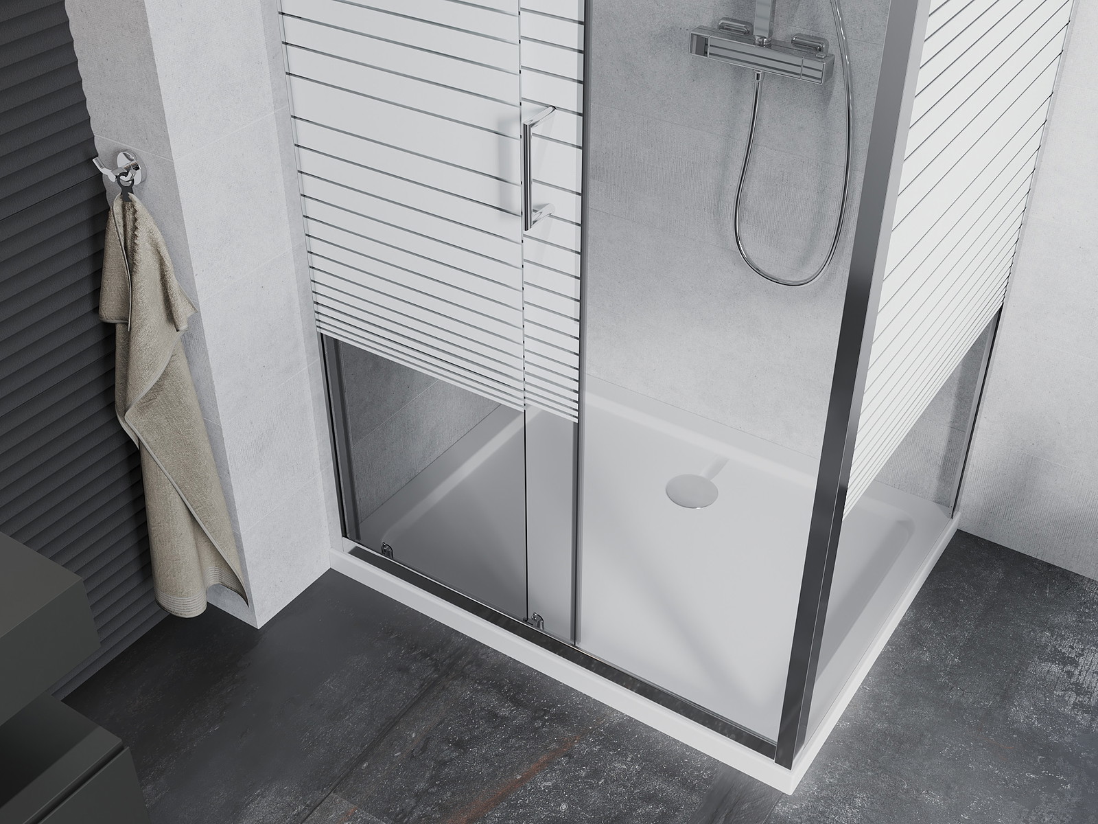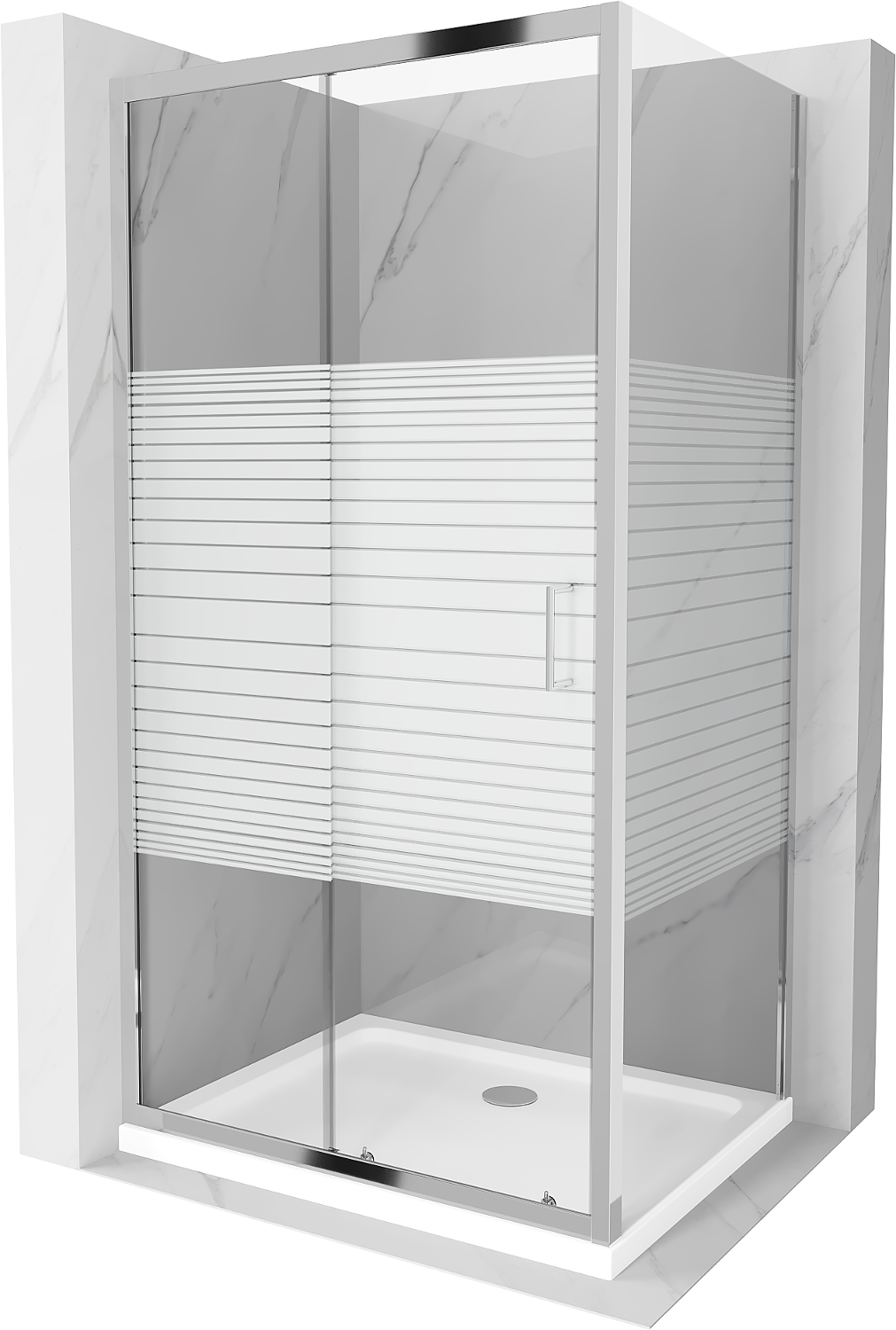 Mexen Apia posuvná sprchová kabina 100 x 90 cm, bílé proužky, chrom + sprchová vanička Flat - 840-100-090-01-20-4010