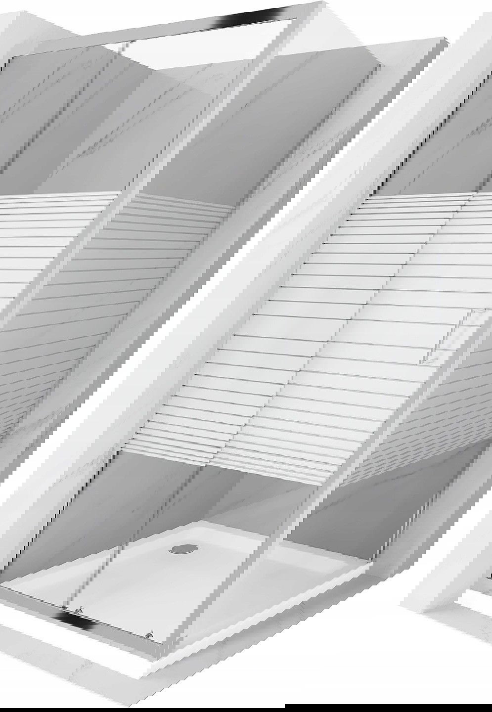 Mexen Apia posuvná sprchová kabina 100 x 100 cm, bílé pruhy, chrom + sprchová vanička Flat - 840-100-100-01-20-4010
