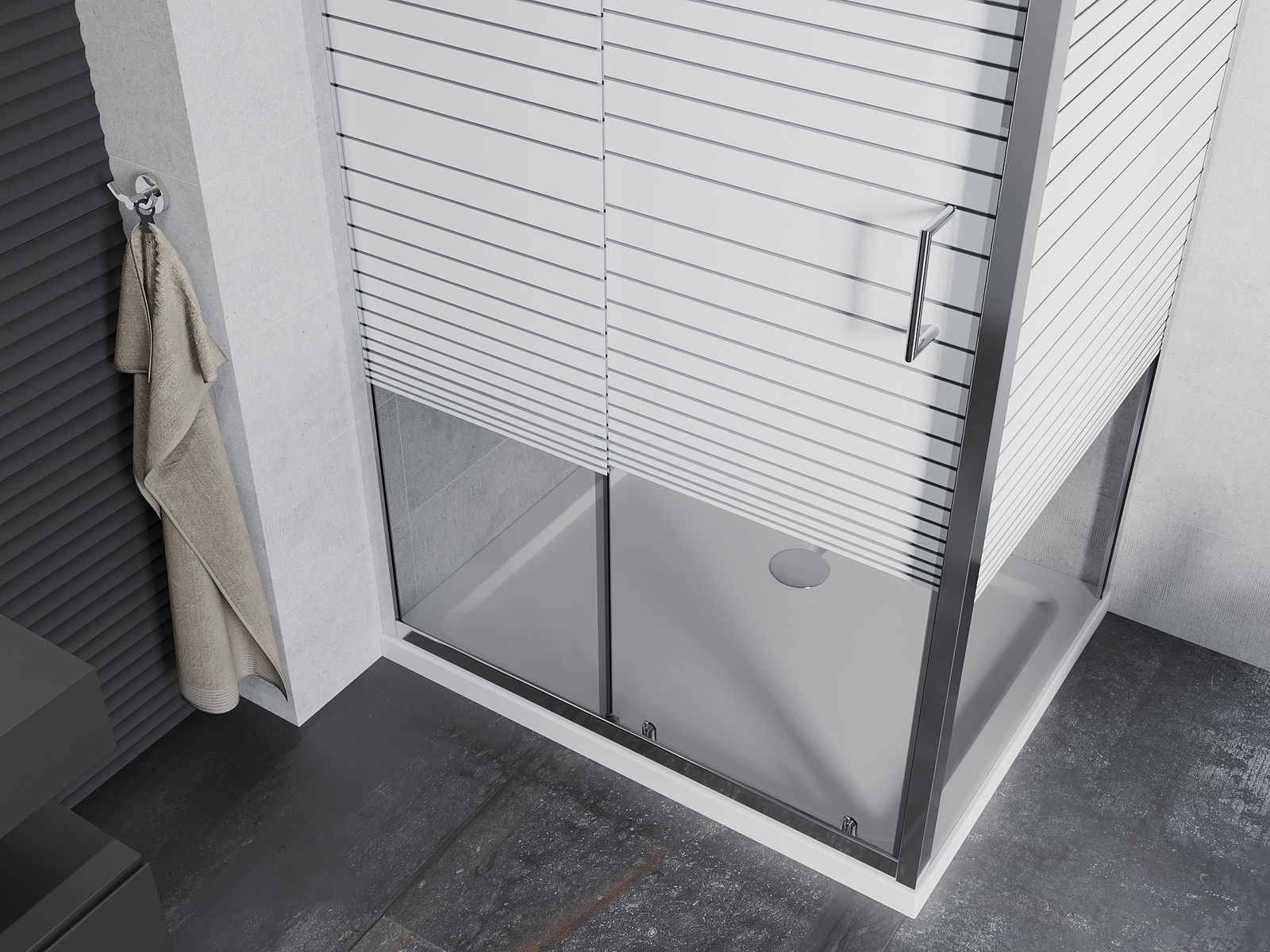 Mexen Apia posuvná sprchová kabina 110 x 80 cm, bílé pruhy, chrom + sprchová vanička Flat - 840-110-080-01-20-4010
