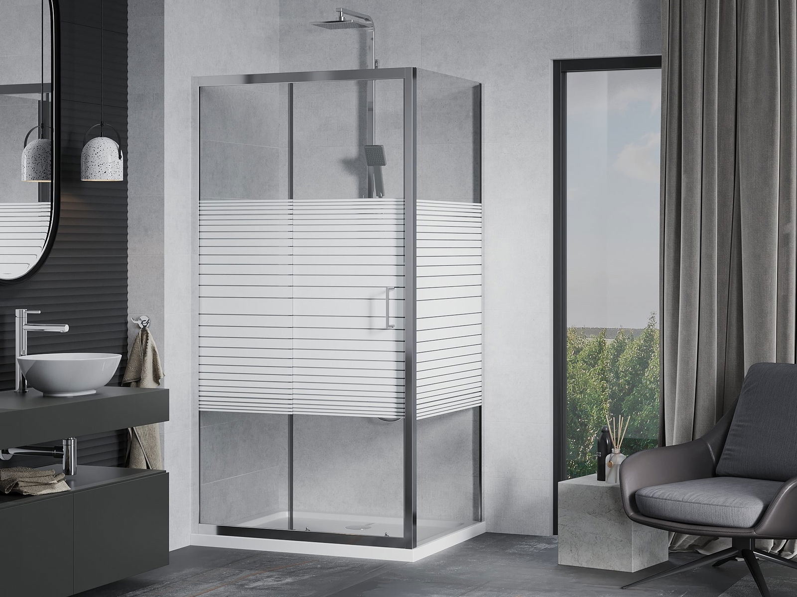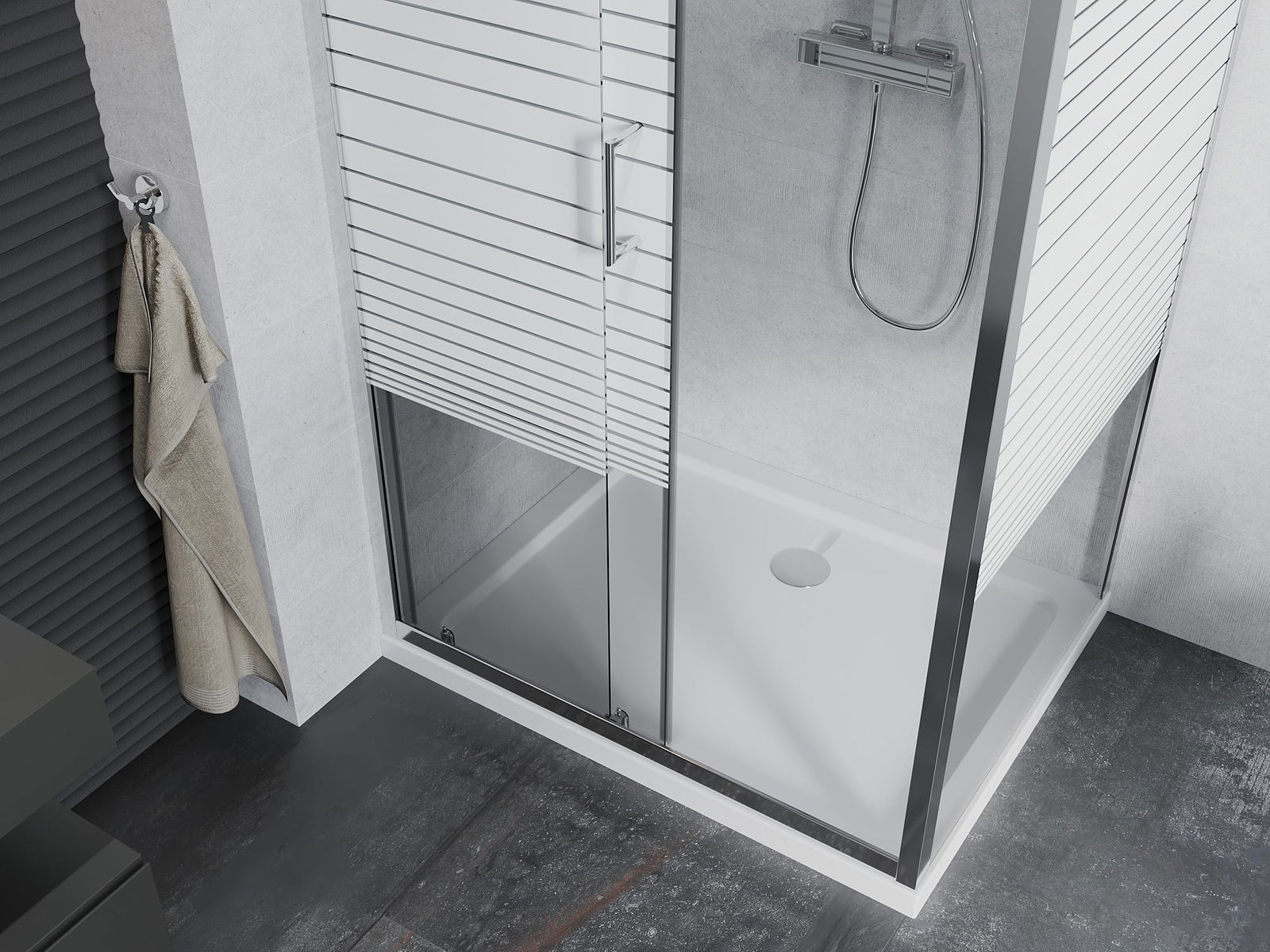 Mexen Apia posuvná sprchová kabina 120 x 80 cm, bílé pruhy, chrom + vanička Flat - 840-120-080-01-20-4010