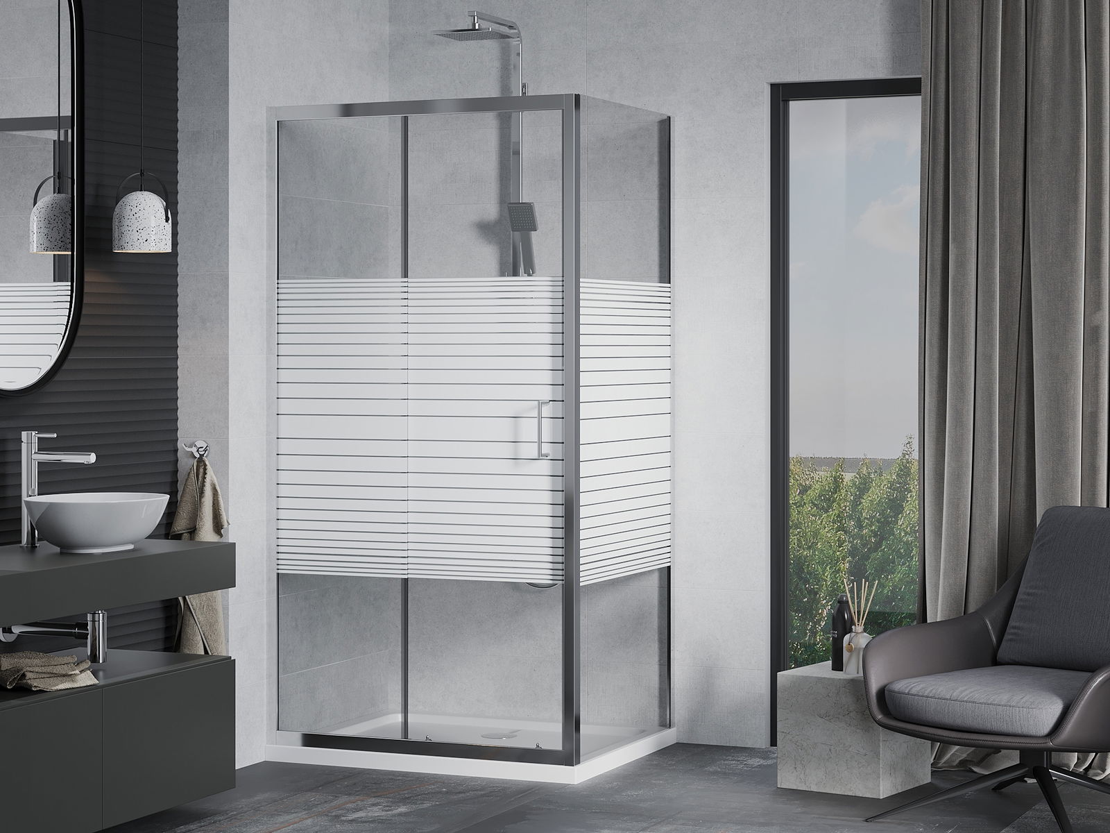 Mexen Apia posuvná sprchová kabina 120 x 100 cm, bílé pruhy, chrom + Flat sprchová vanička - 840-120-100-01-20-4010