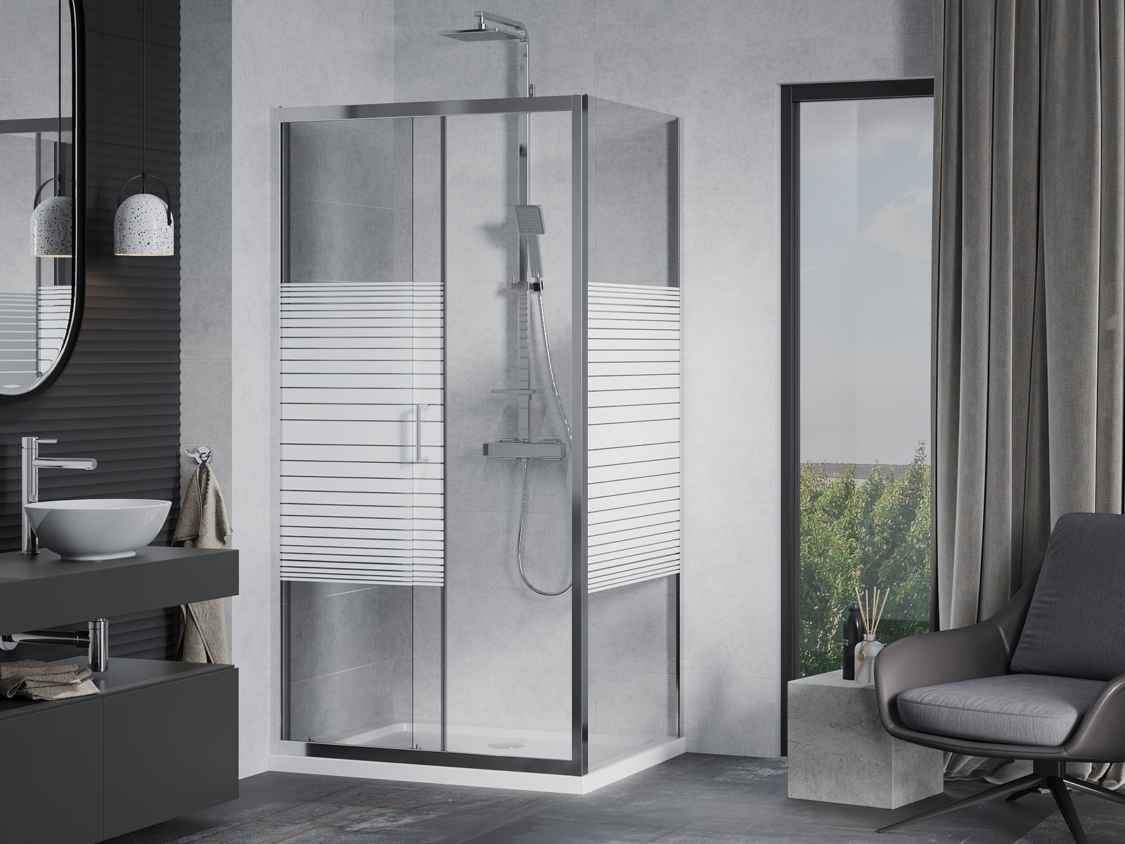 Mexen Apia posuvná sprchová kabina 140 x 90 cm, bílé pruhy, chrom + vanička Flat - 840-140-090-01-20-4010