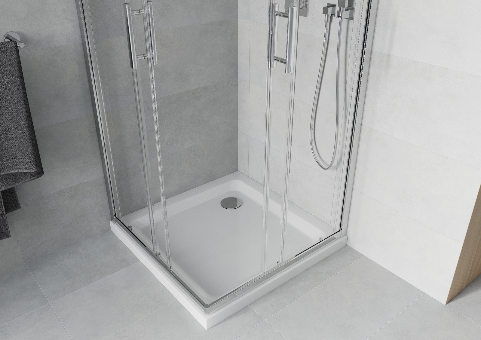Posuvné dveře se pohybují po speciálních vodítkách a nevyžadují další prostor pro jejich otevření, proto se hodí do menších koupelen. Díky dvojitým válečkům z odolného plastu je jejich pohyb plynulý.