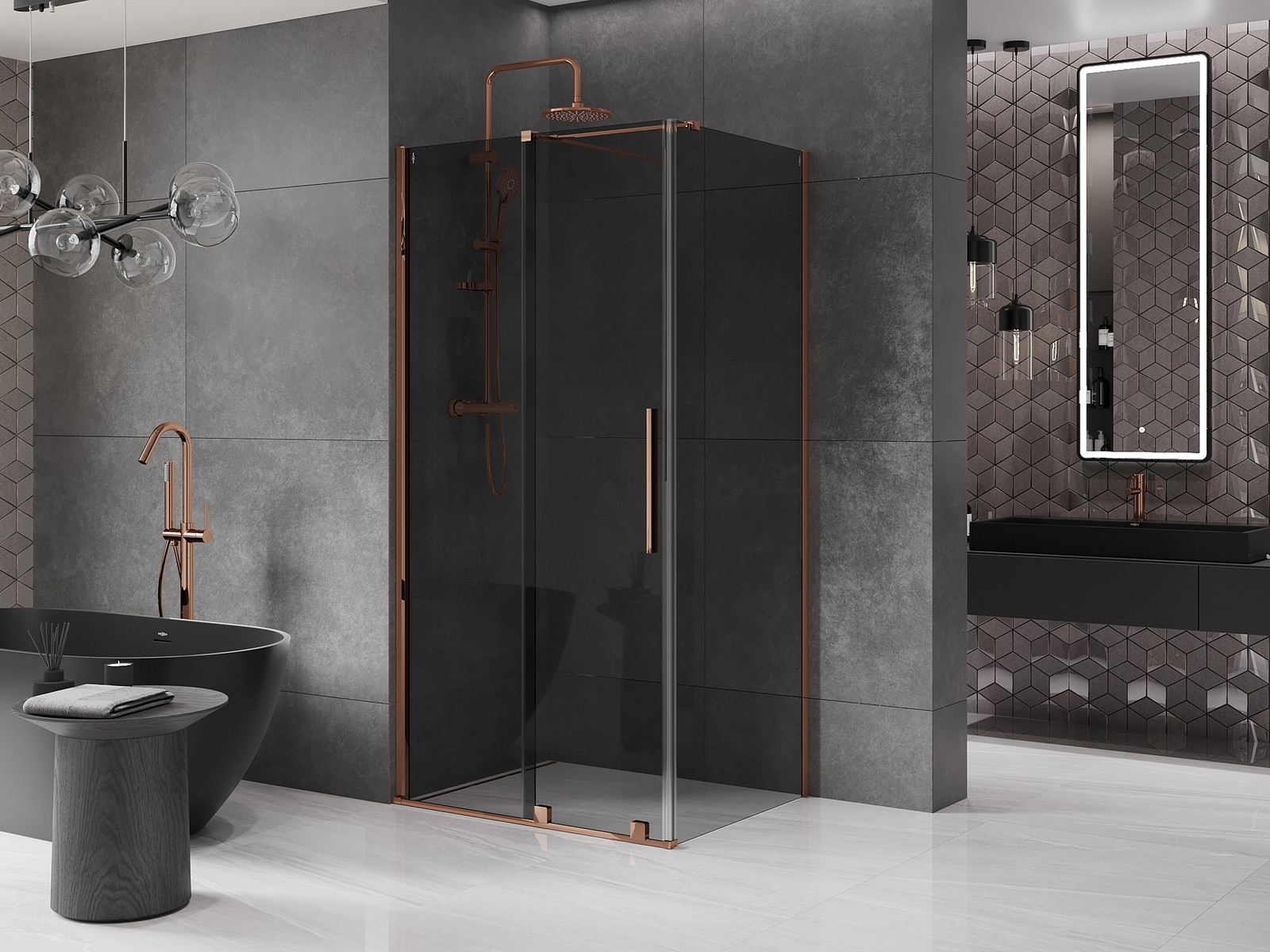 Mexen Velar sprchový kout posuvný 100 x 75 cm, grafit, růžové zlato - 871-100-075-41-60