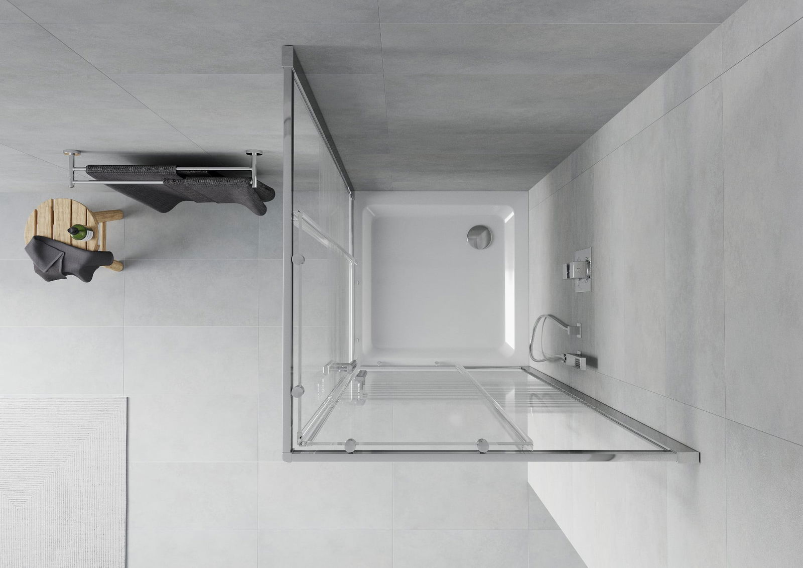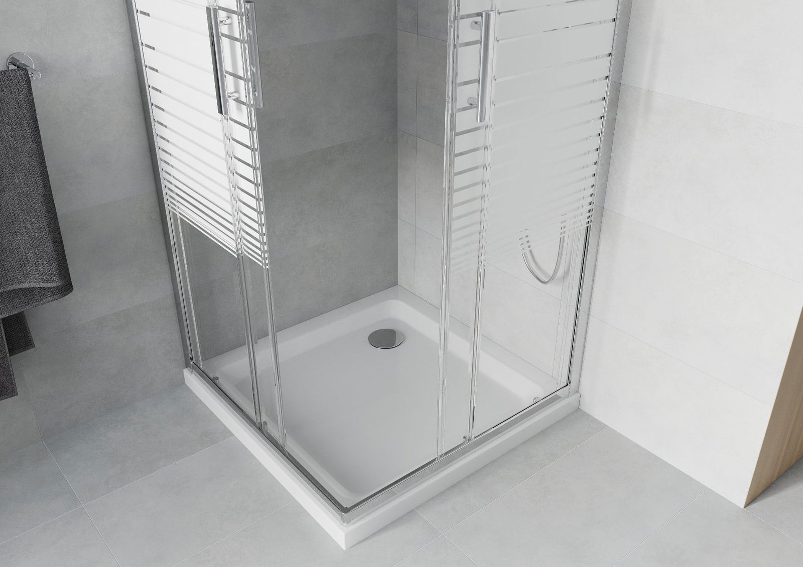 Posuvné dveře se pohybují po speciálních vodítkách a nevyžadují další prostor pro jejich otevření, proto se hodí do menších koupelen. Díky dvojitým válečkům z odolného plastu je jejich pohyb plynulý.