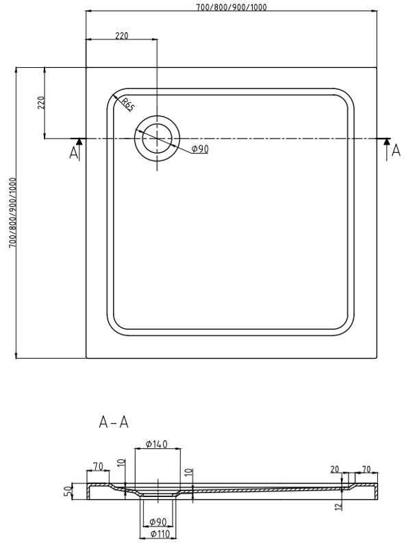 Průměr odtoku: 90 mm