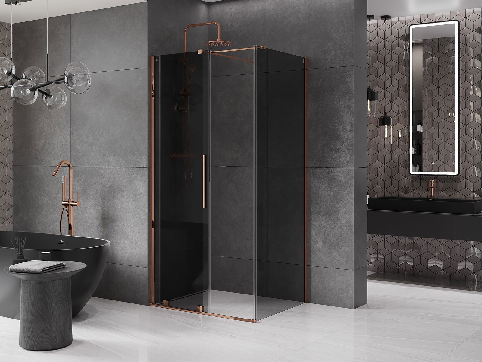 Mexen Velar posuvná sprchová kabina 110 x 85 cm, grafit, růžové zlato - 871-110-085-41-60