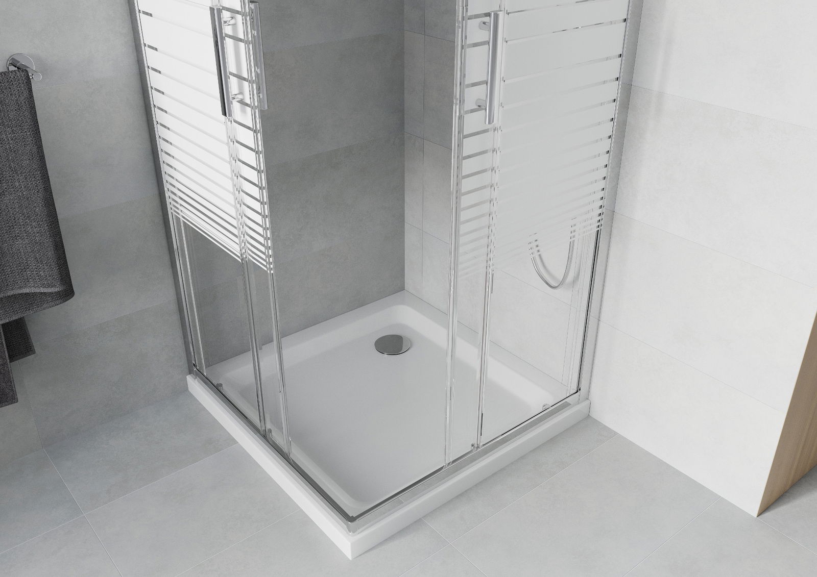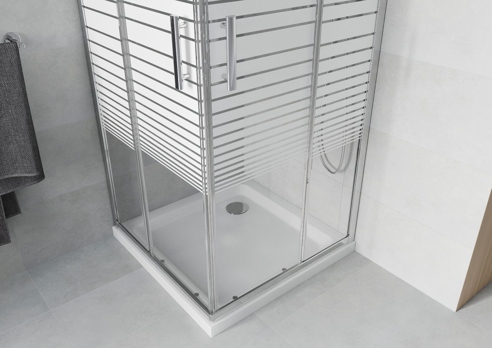 Mexen Rio čtvercová sprchová kabina 90 x 90 cm, bílé pruhy, chrom + plochá sprchová vanička, bílá - 860-090-090-01-20-4010