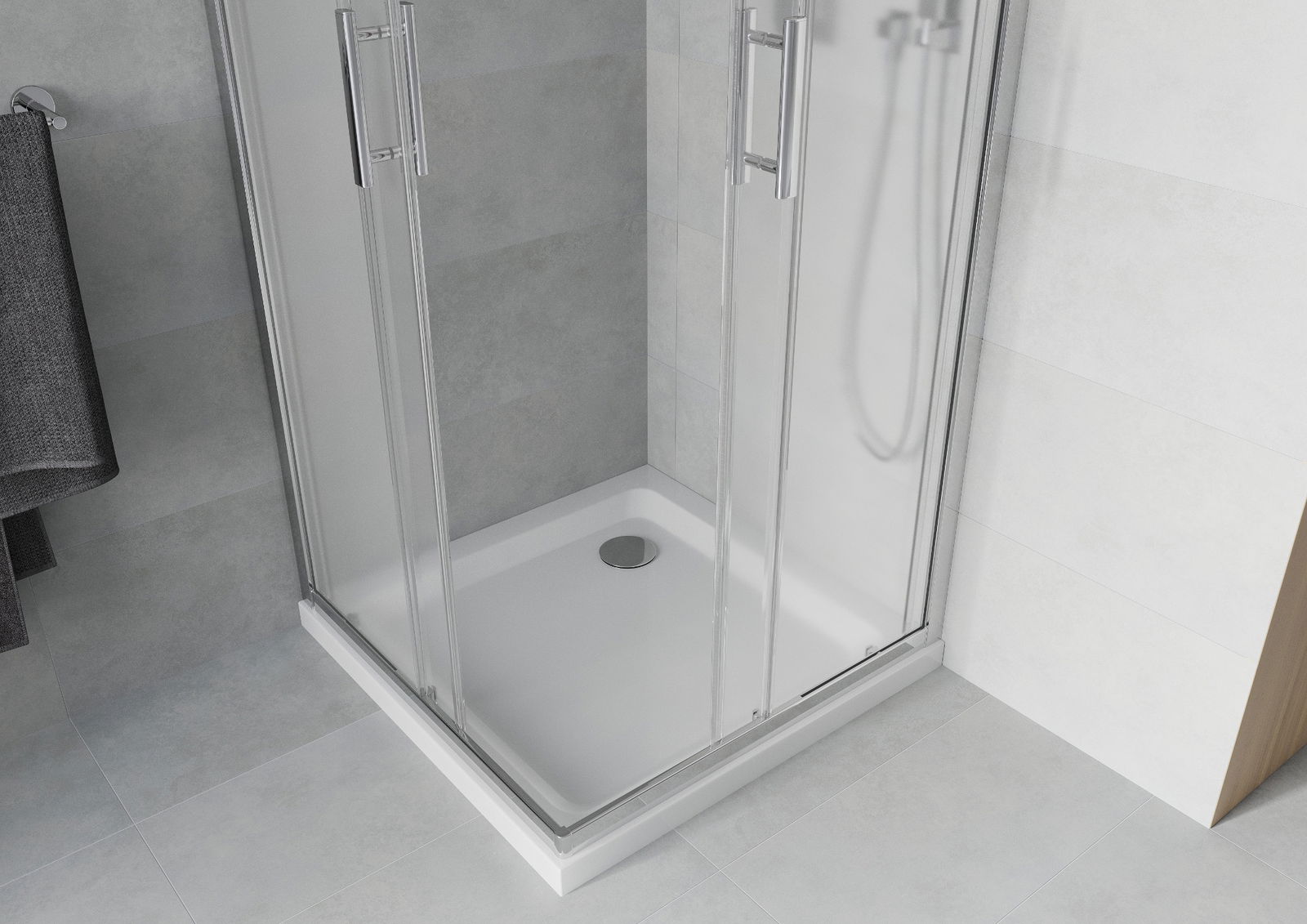 Mexen Rio čtvercový sprchový kout 90 x 90 cm, matný, chrom + plochá vanička, bílá - 860-090-090-01-30-4010