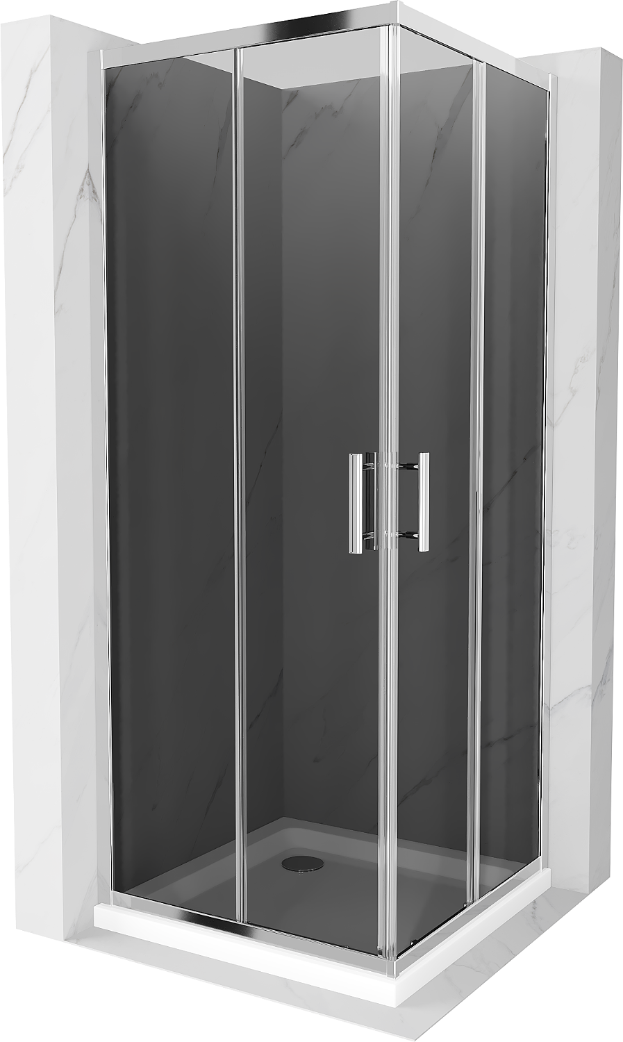 Mexen Rio čtvercová sprchová kabina 80 x 80 cm, grafit, chrom + Flat vanička, bílá - 860-080-080-01-40-4010