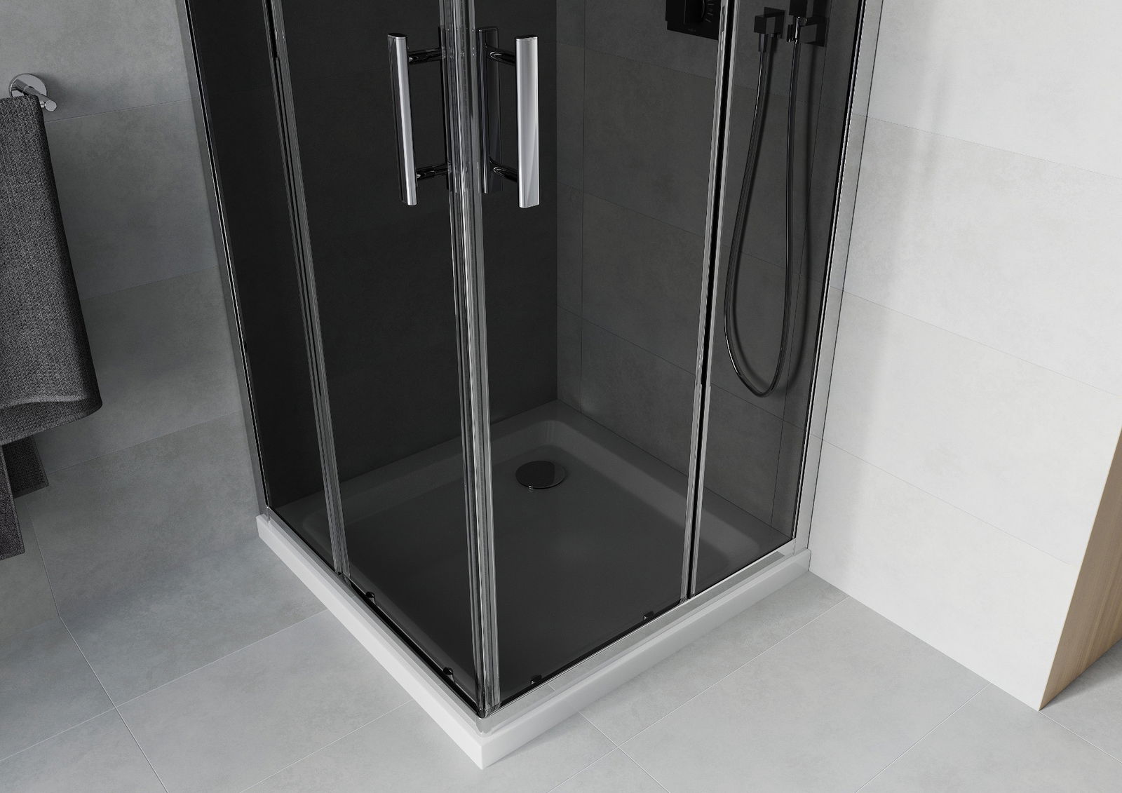 Mexen Rio čtvercová sprchová kabina 80 x 80 cm, grafit, chrom + vanička Flat, bílá - 860-080-080-01-40-4010