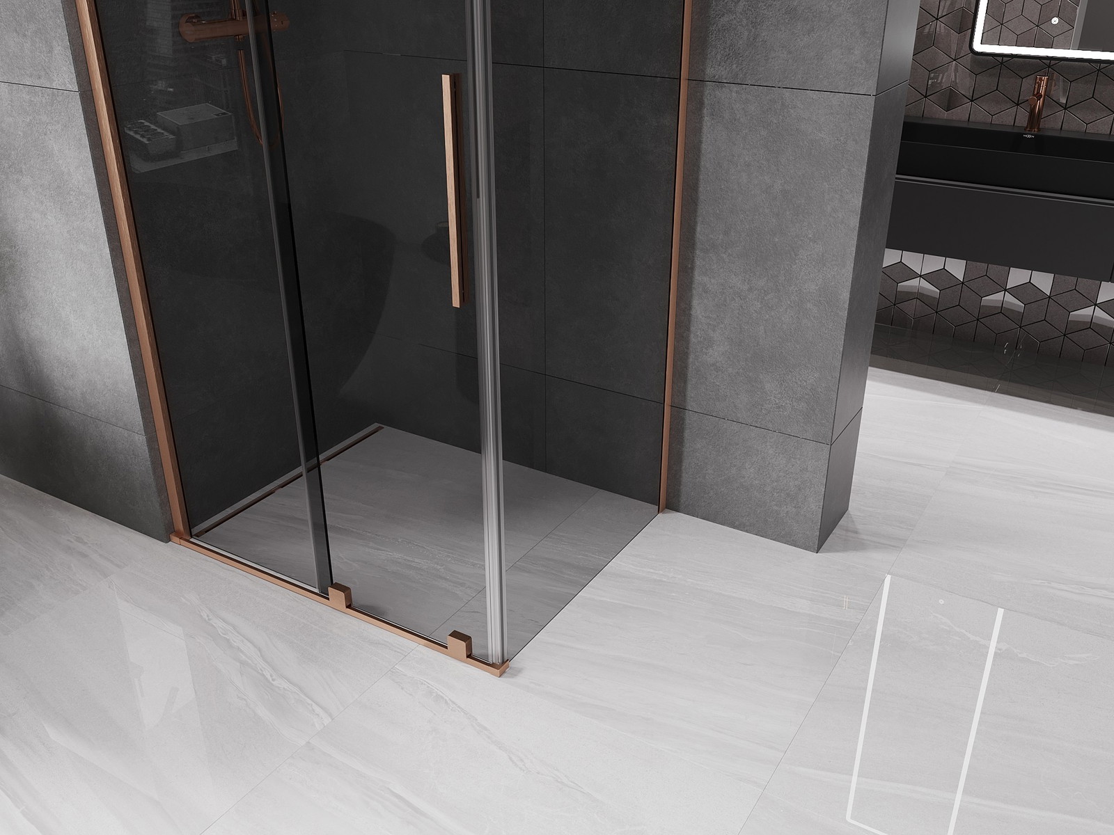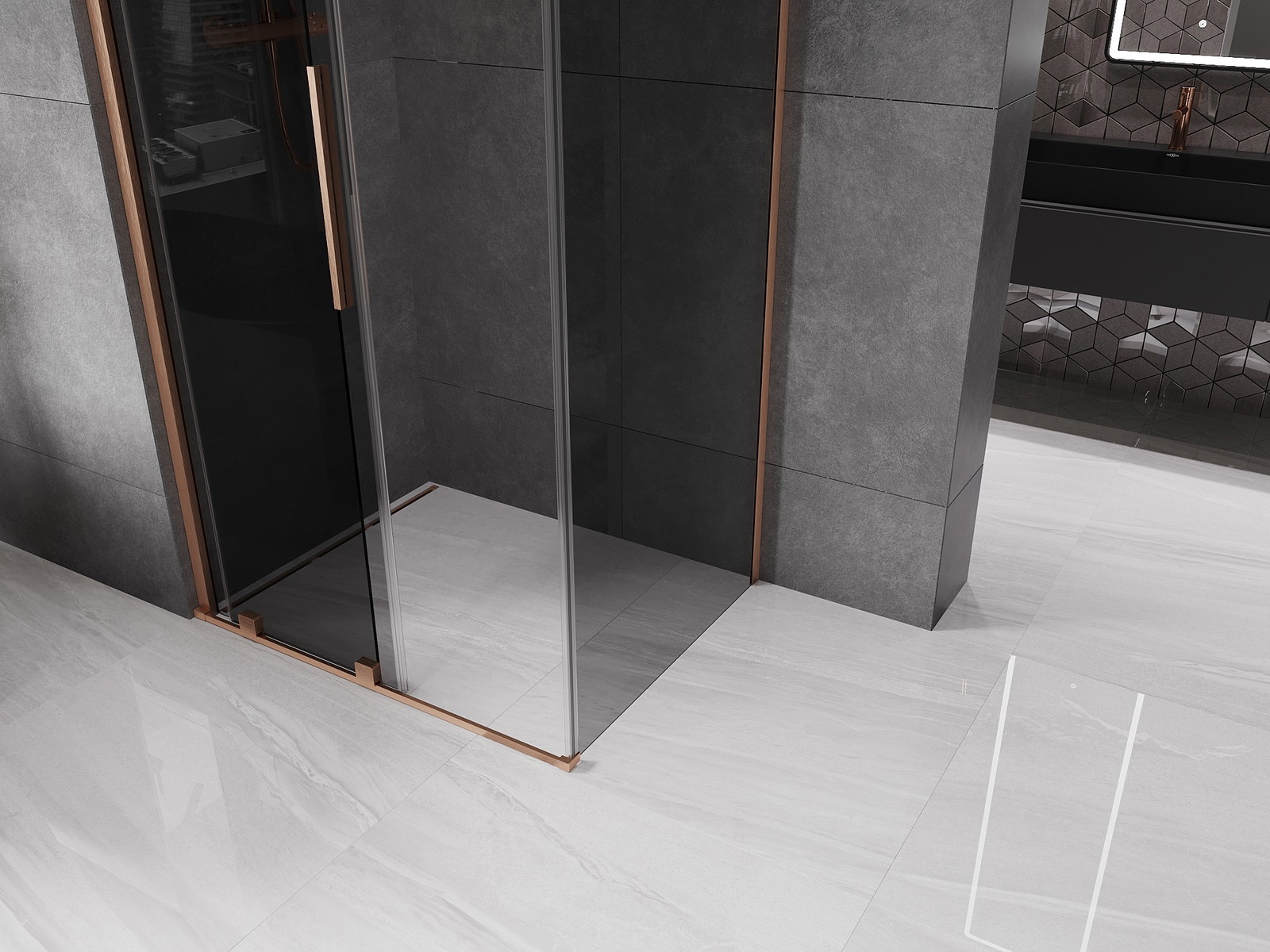 Mexen Velar posuvný sprchový kout 90 x 70 cm, grafit, kartáčovaná měď - 871-090-070-41-65