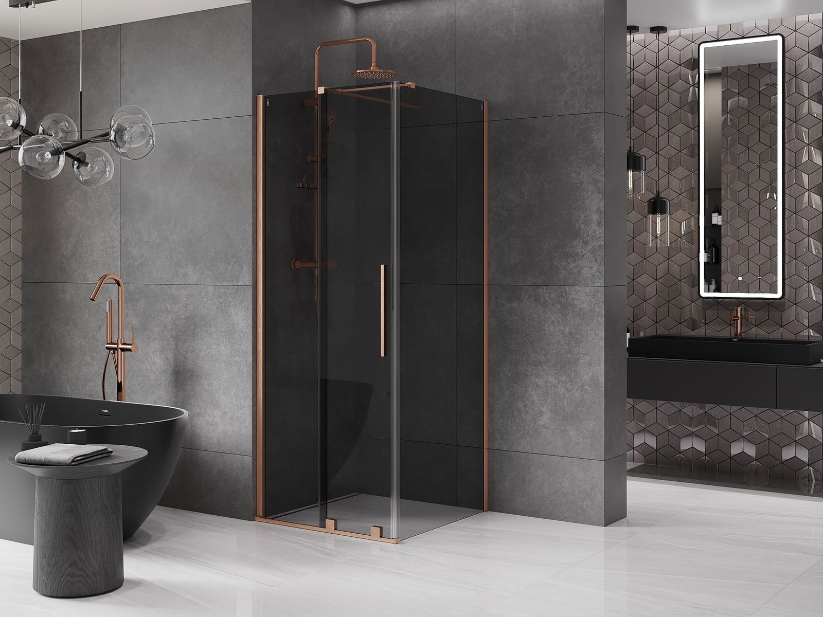 Mexen Velar sprchový kout posuvný 120 x 120 cm, grafit, kartáčovaná měď - 871-120-120-41-65