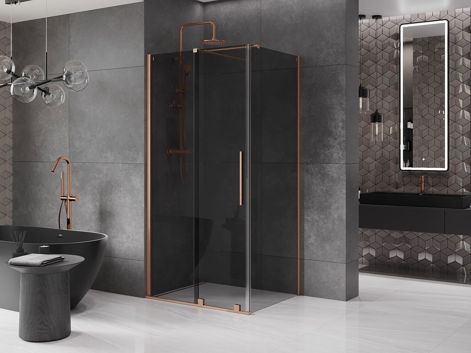 Mexen Velar posuvná sprchová kabina 130 x 100 cm, grafit, kartáčovaná měď - 871-130-100-41-65