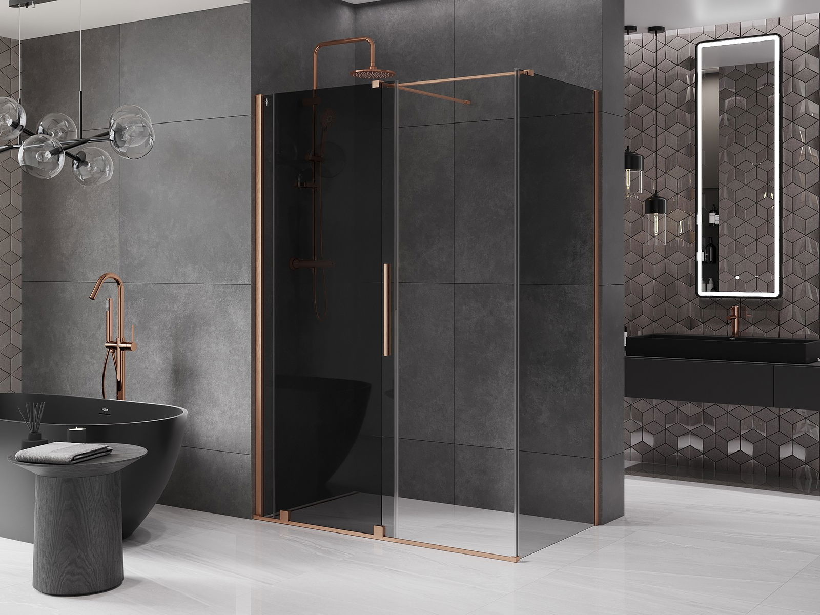 Mexen Velar posuvná sprchová kabina 150 x 75 cm, grafit, kartáčovaná měď - 871-150-075-41-65