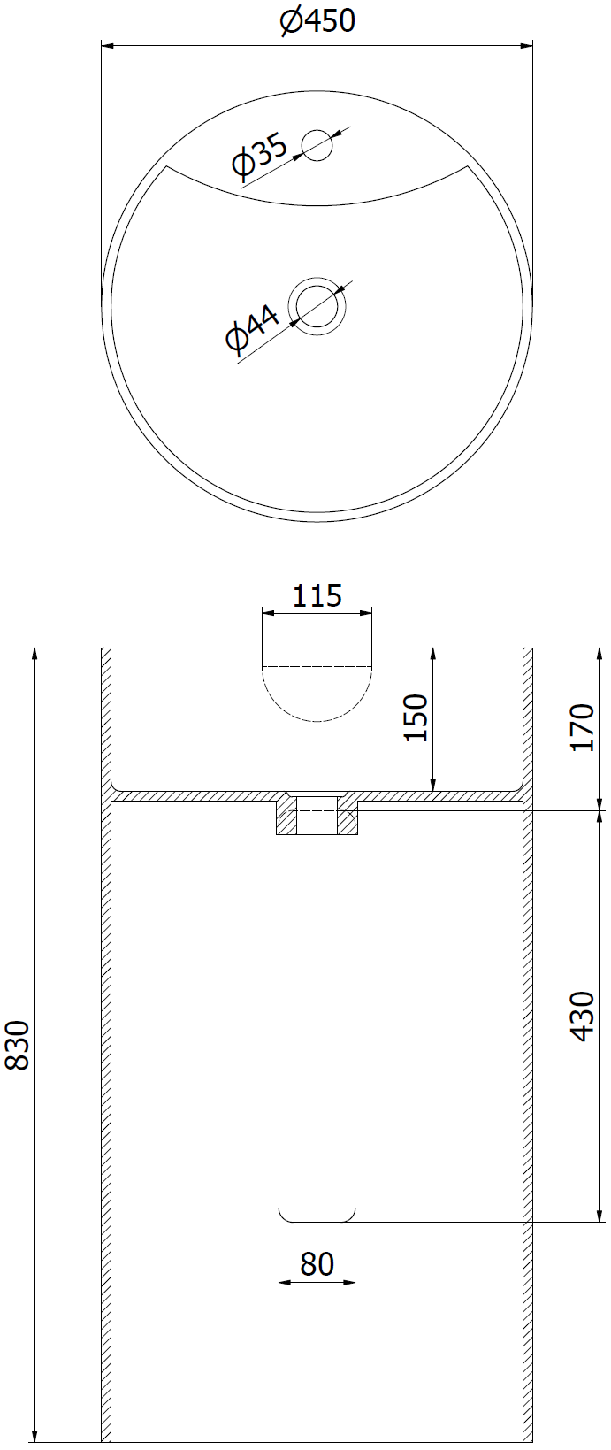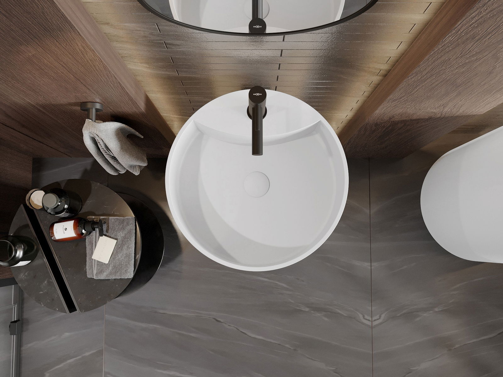 Umyvadlo má otvor, ve kterém lze namontovat baterii. Umožňuje to ušetřit cenný prostor v koupelně a zvýraznit její estetiku. Toto řešení také usnadňuje udržování čistoty kolem umyvadla.