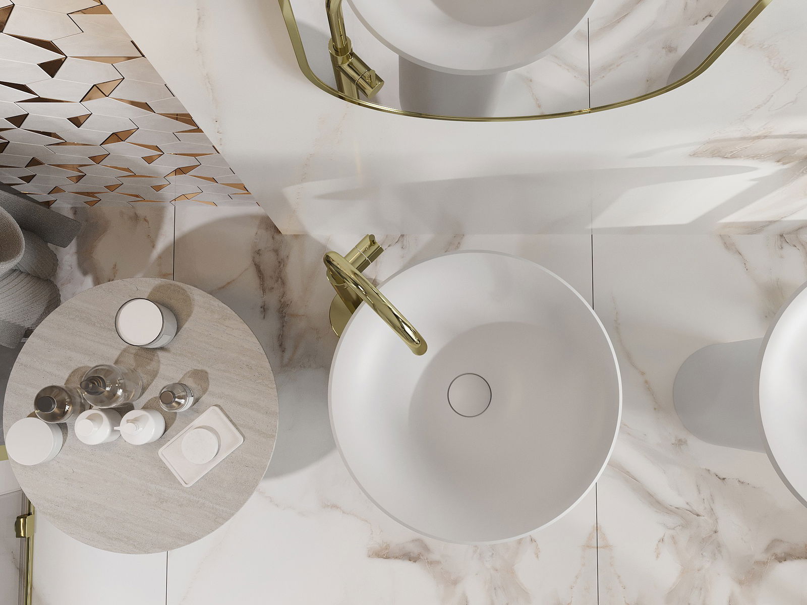 Mexen Leta volně stojící umyvadlo z konglomerátu 45 x 45 cm, bílá mat - 26574500