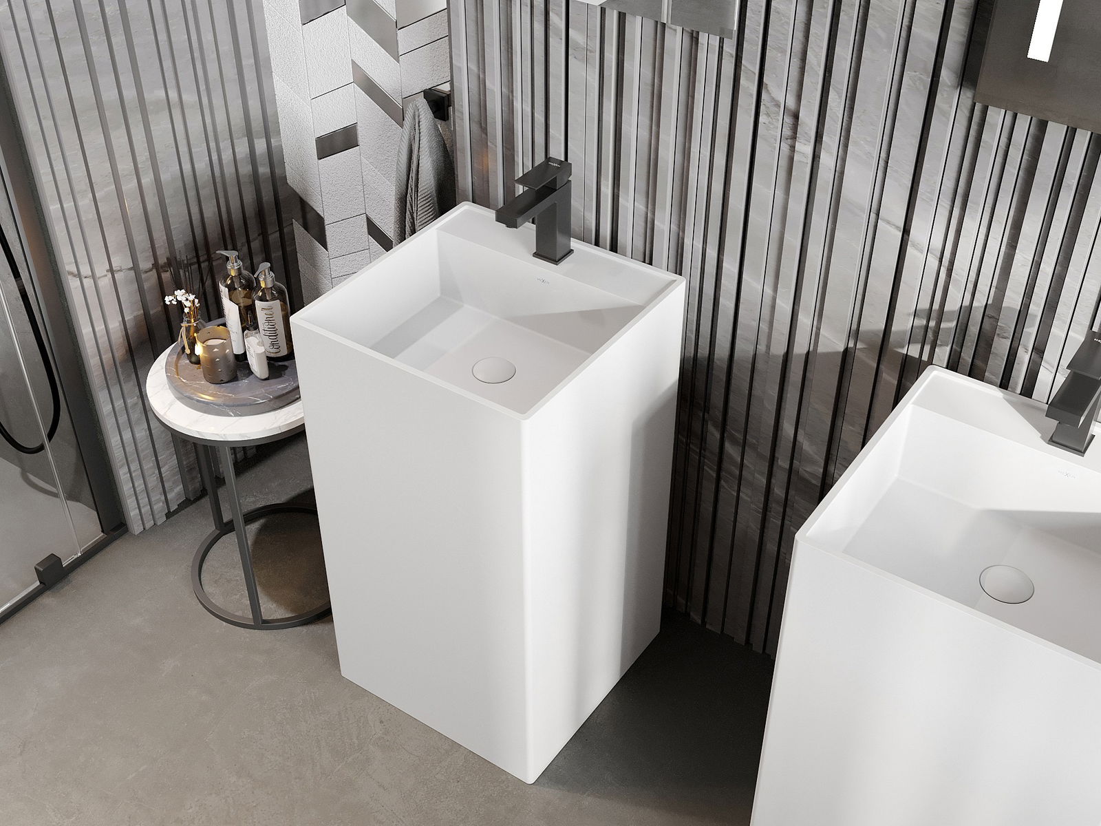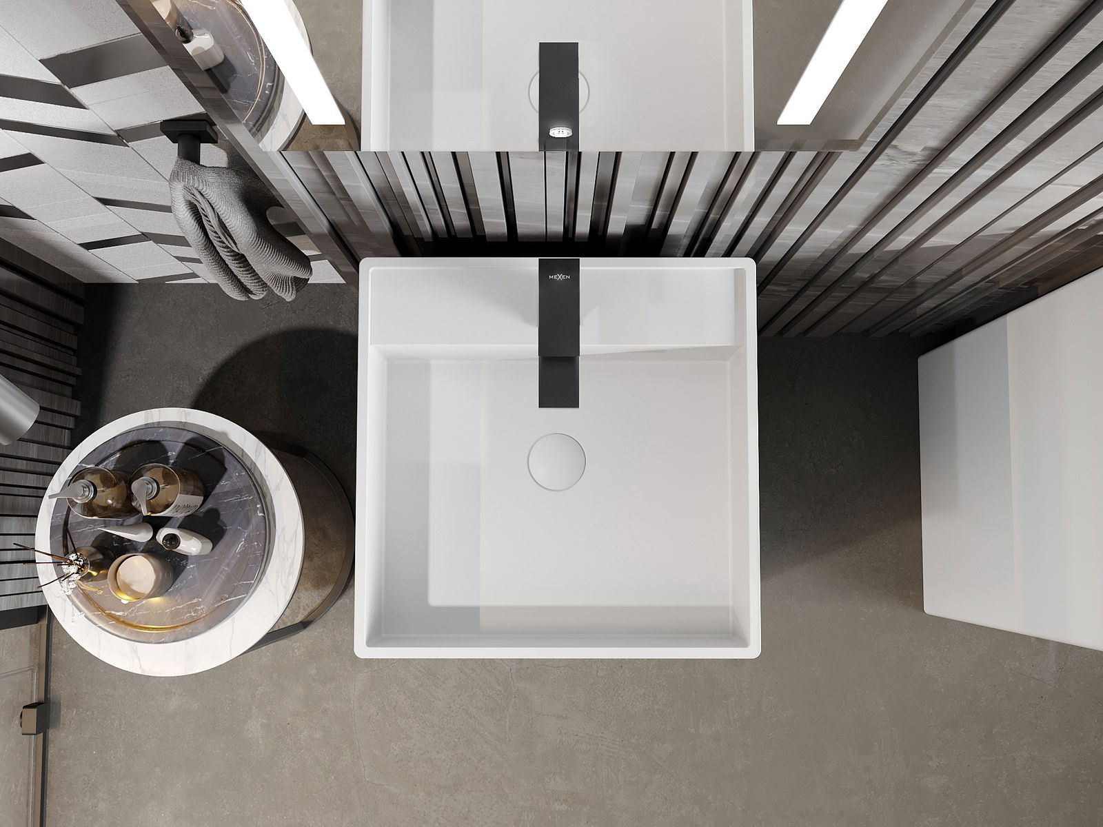 Mexen Belen volně stojící umyvadlo z konglomerátu 45 x 45 cm, bílá mat - 26604500
