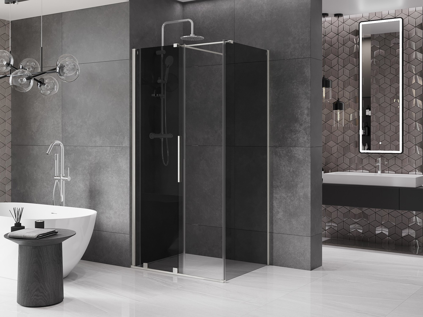 Mexen Velar je moderní sprchový kout s posuvnými dveřmi o rozměrech 130 x 85 cm, ideální pro stylovou koupelnu. Díky grafitovému sklu o tloušťce 8 mm a kartáčovanému niklovému povrchu nabízí elegance a odolnost. Univerzální montáž a možnost instalace jak na vaničku, tak na dlažbu zajišťují flexibilitu použití. Hliníkový profil a nejvyšší kvalita jednotlivých válečků zaručují stabilitu a povrch usnadňující čištění usnadňuje údržbu.