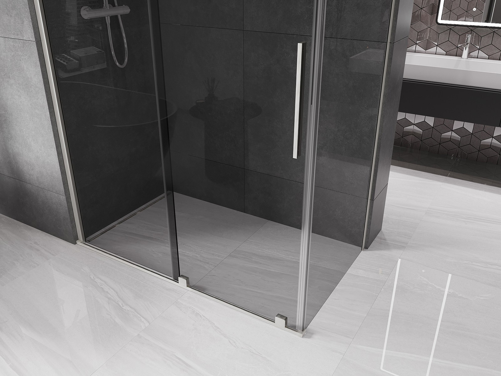 Mexen Velar je elegantní posuvná sprchová kabina o rozměrech 150 x 75 cm, která přináší modernost a funkčnost do každé koupelny. Díky univerzální montáži ji můžete snadno přizpůsobit svým potřebám, jak na vaničce, tak na dlaždicích. Vyrobená z tvrzeného skla o tloušťce 8 mm v barvě grafitu, nabízí trvanlivost a bezpečnost. Povrchová úprava v kartáčovaném niklu podtrhuje její stylový vzhled. Hliníkový profil a nejvyšší kvalita válečků zajišťují plynulý chod posuvných dveří. Kabina má povlak usnadňující čištění a možnost regulace šířky, což zajišťuje větší komfort užívání. Je vybavena sadou těsnění odvádějících vodu a hliníkovým těsnicím prahem dveří, což zabraňuje únikům vody.