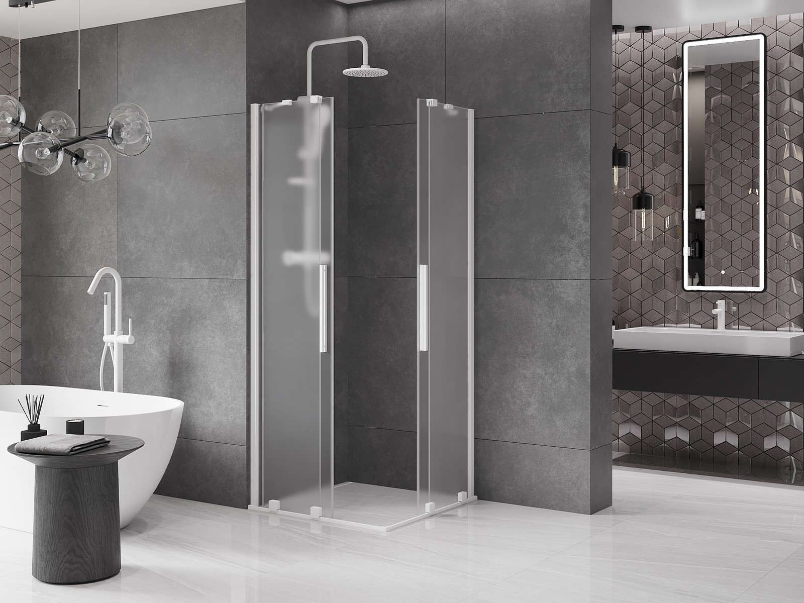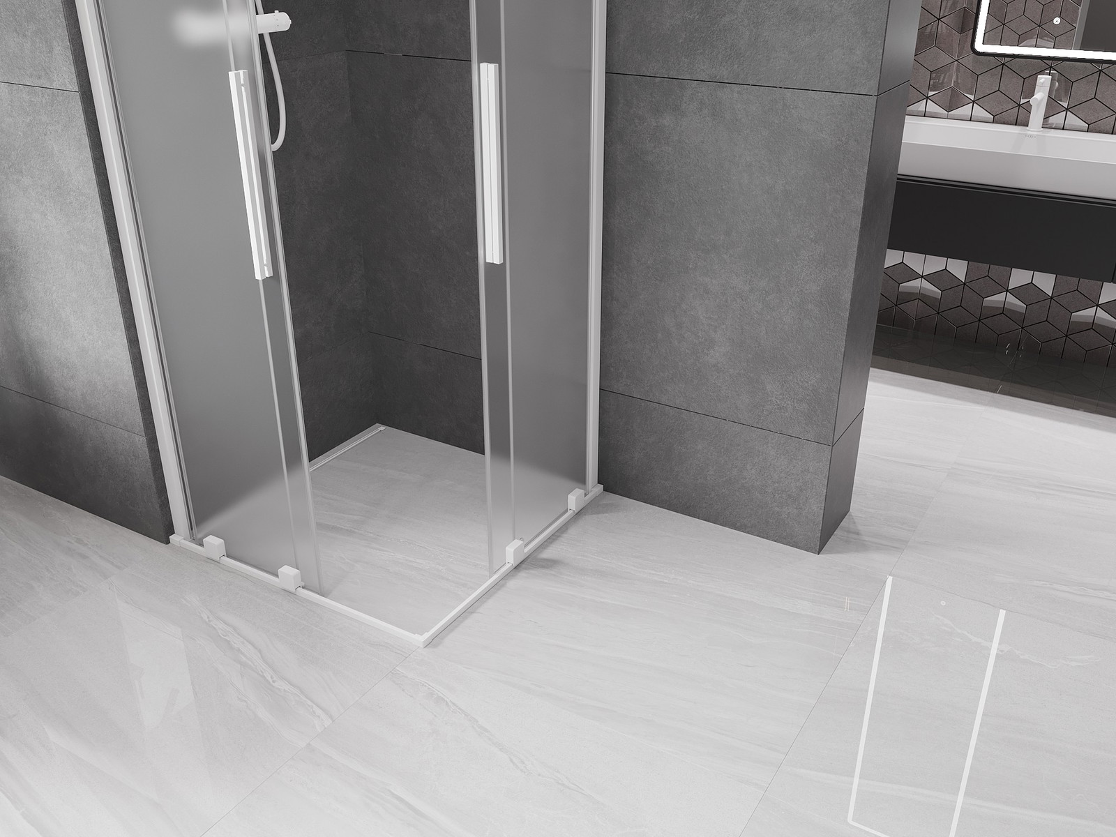 Mexen Velar Duo posuvná sprchová kabina 80 x 80 cm, mrazová, bílá - 871-080-080-32-20