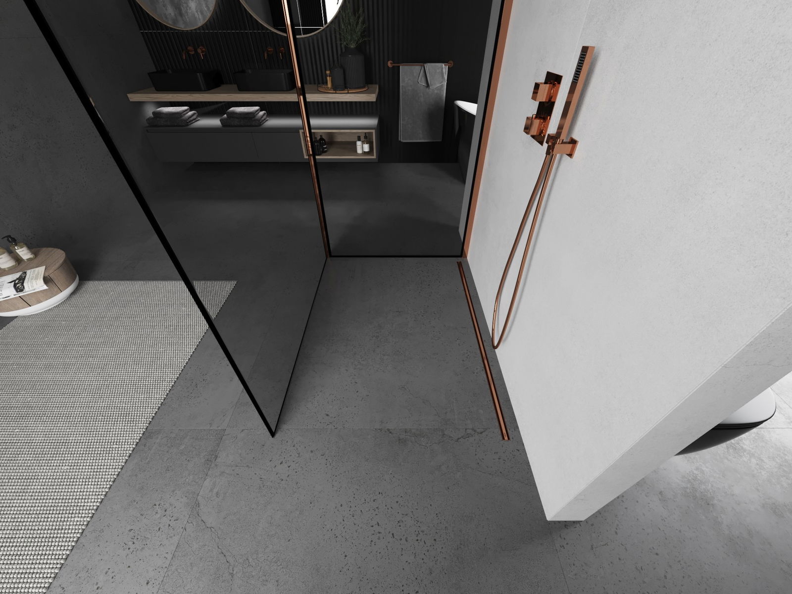 Mexen Kioto sprchové dveře Walk-in 120 x 120 cm, černý rám, růžové zlato - 800-120-212-60-70-120