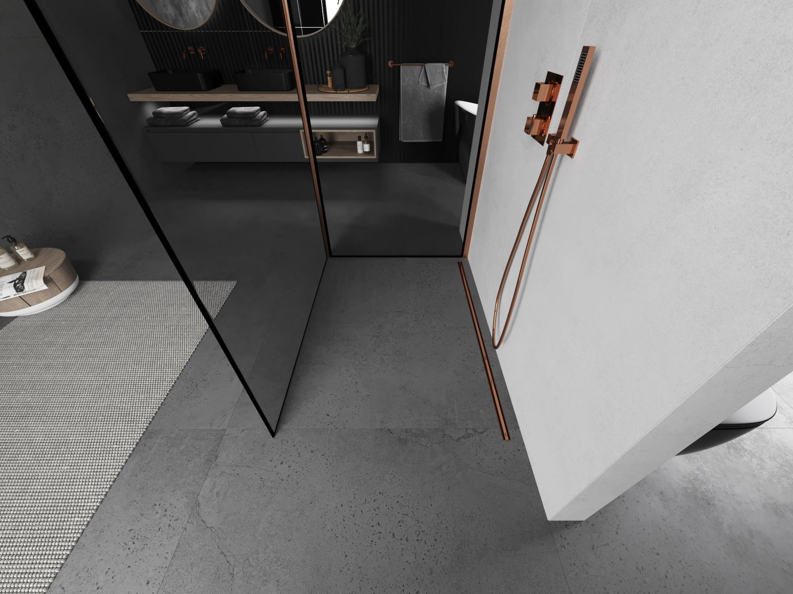 Mexen Kioto sprchová stěna Walk-in 140 x 80 cm, černý rámeček, kartáčovaná měď - 800-140-212-65-70-080