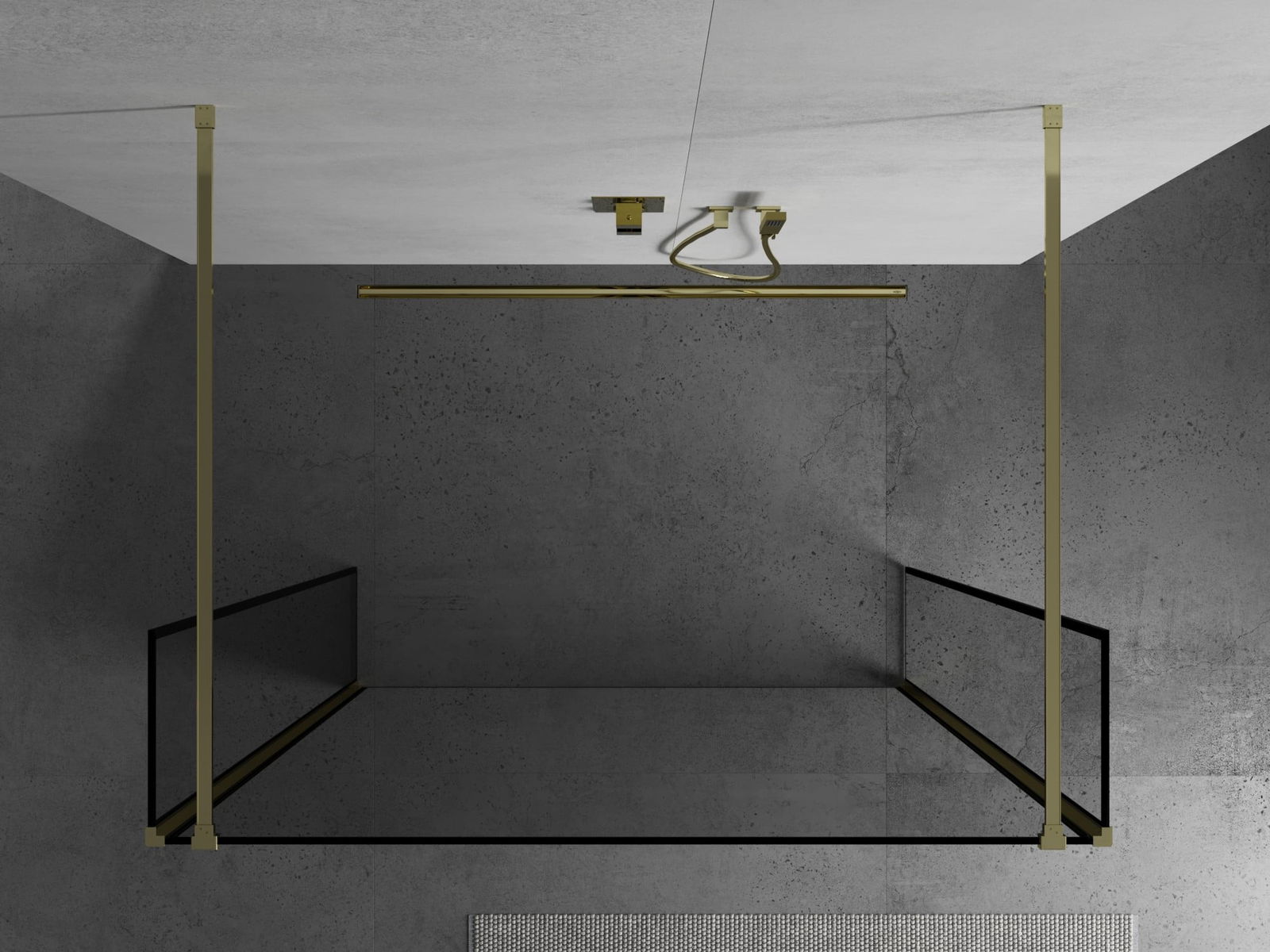 Mexen Kioto sprchová stěna volně stojící 140 x 30 x 30 cm, černý rám, zlatá - 800-140-030-222-50-70-030