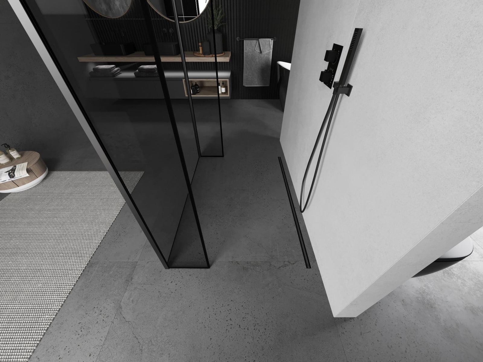 Mexen Kioto volně stojící sprchová stěna 130 x 30 x 30 cm, černý rám, gun metal - 800-130-030-222-95-70-030